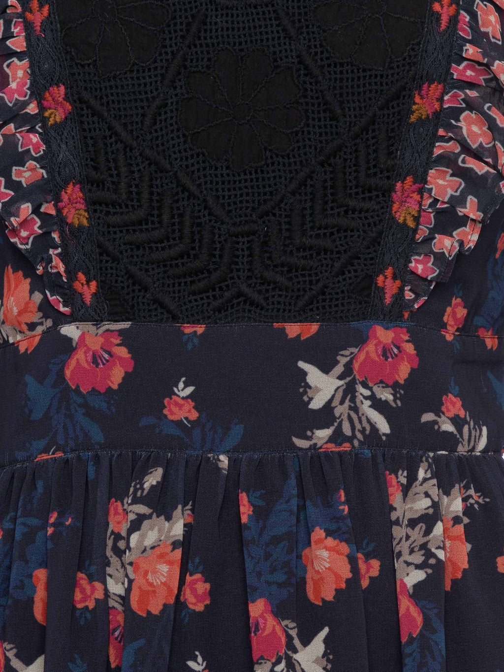 - Crochet detailing on chest panel.