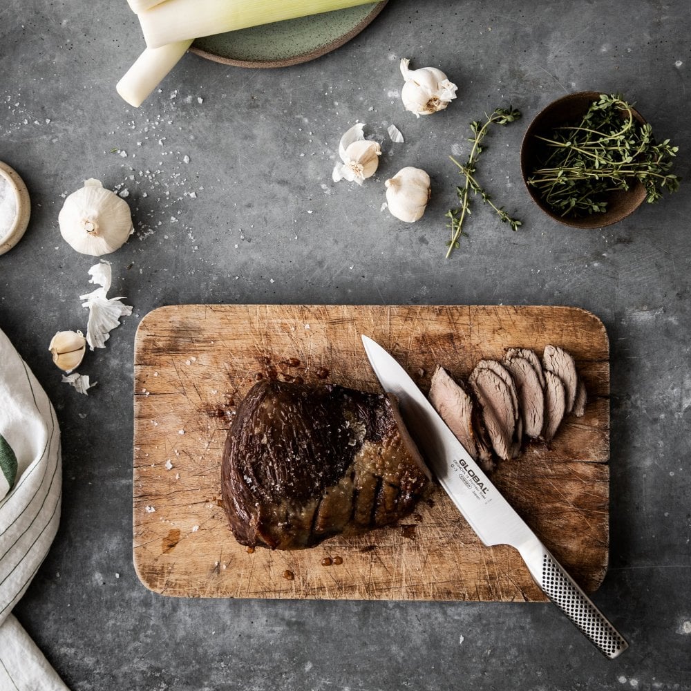 Having a super sharp Global G-3 Carvign Knife 21cm will ensure all your cuts of meat are thin and tender.