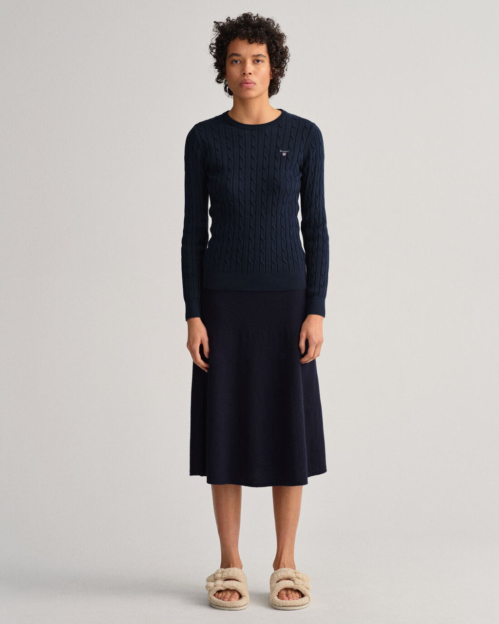 - Cable knit design.
