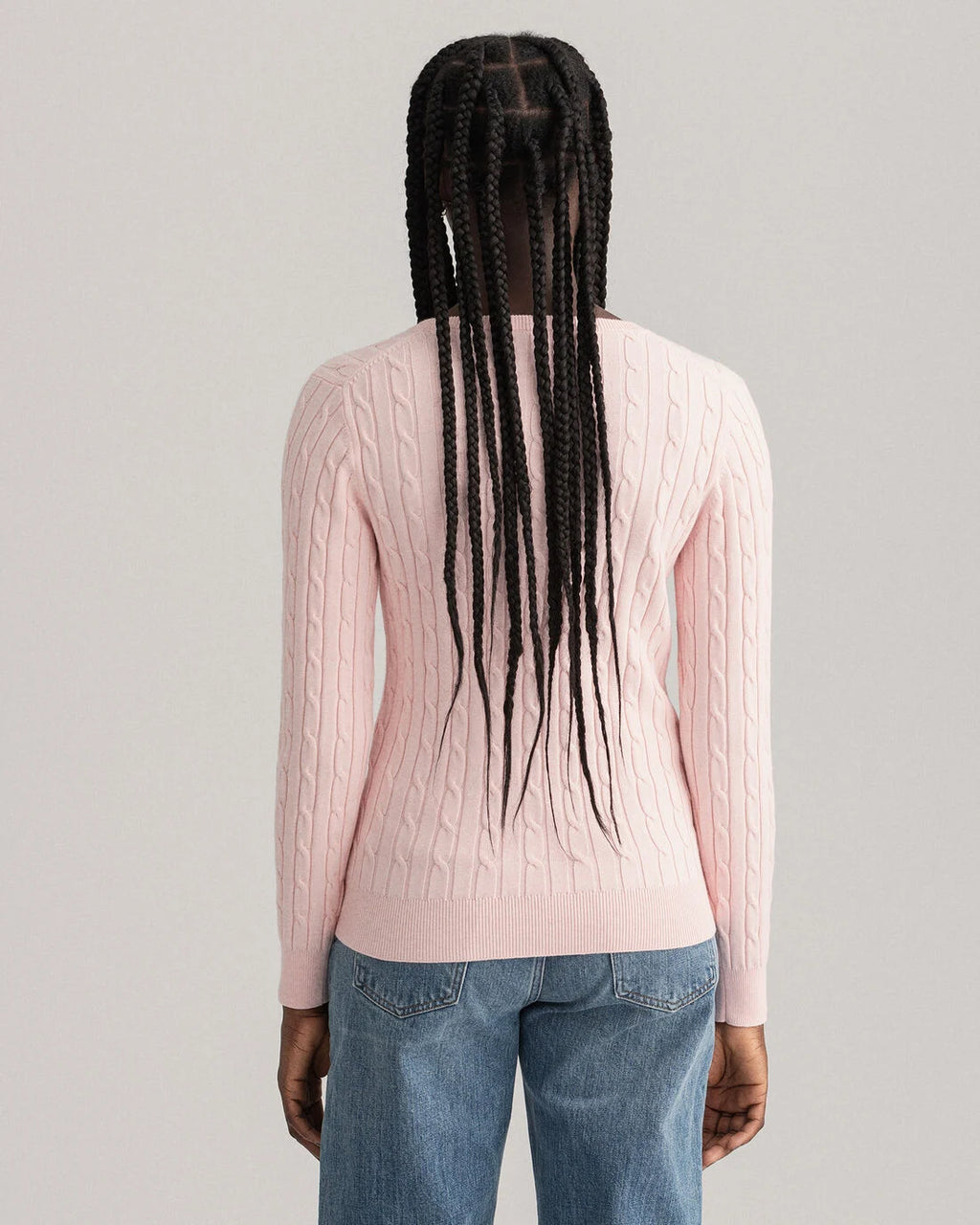 Stretch Cable V Neck Jumper - Light Pink Melange