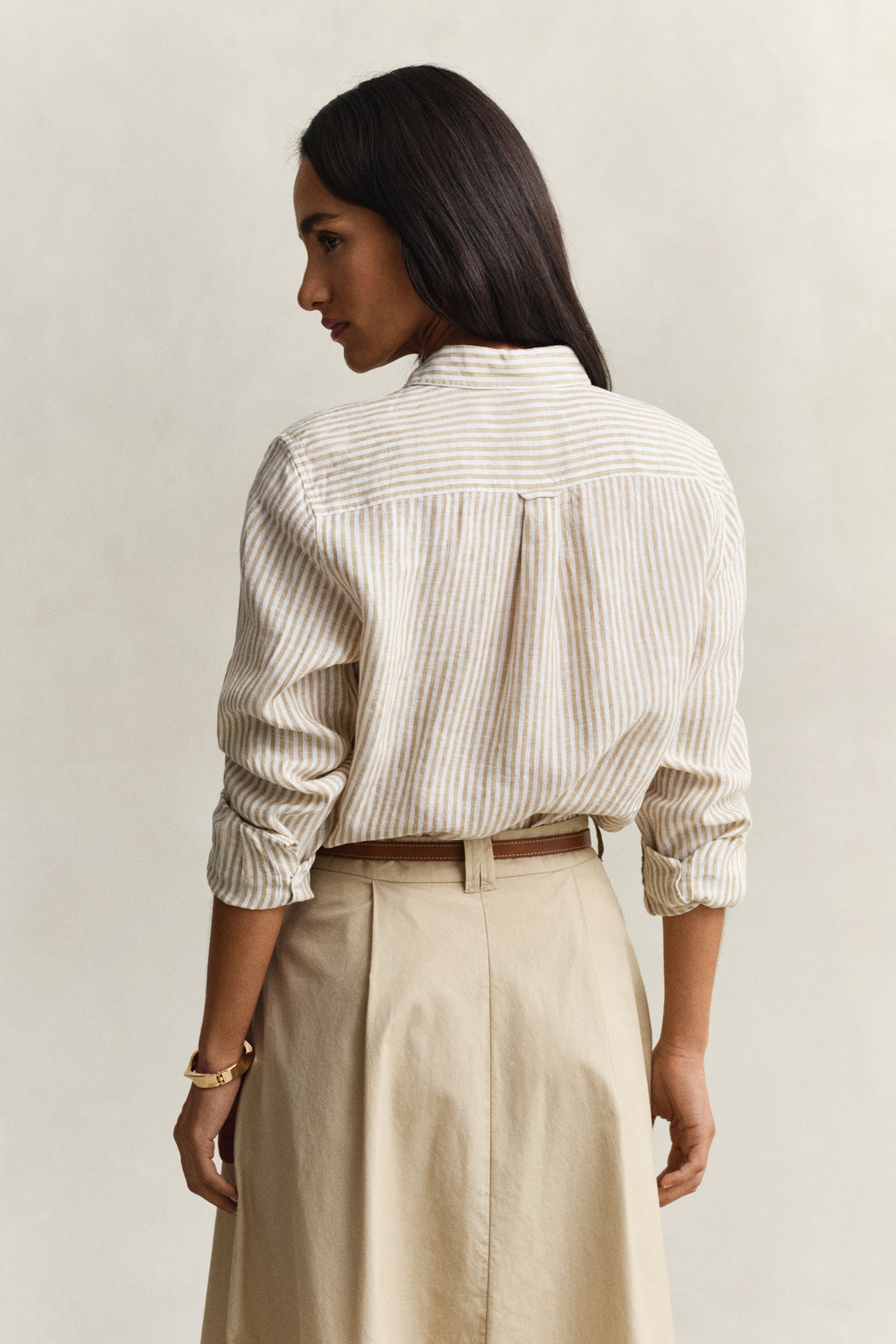Striped Linen Long Sleeve Shirt - Oat Beige