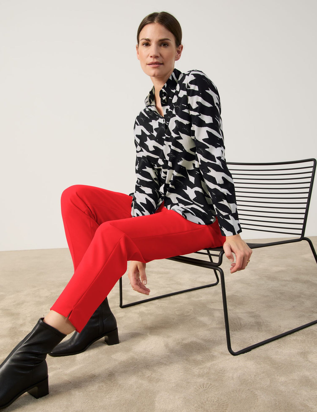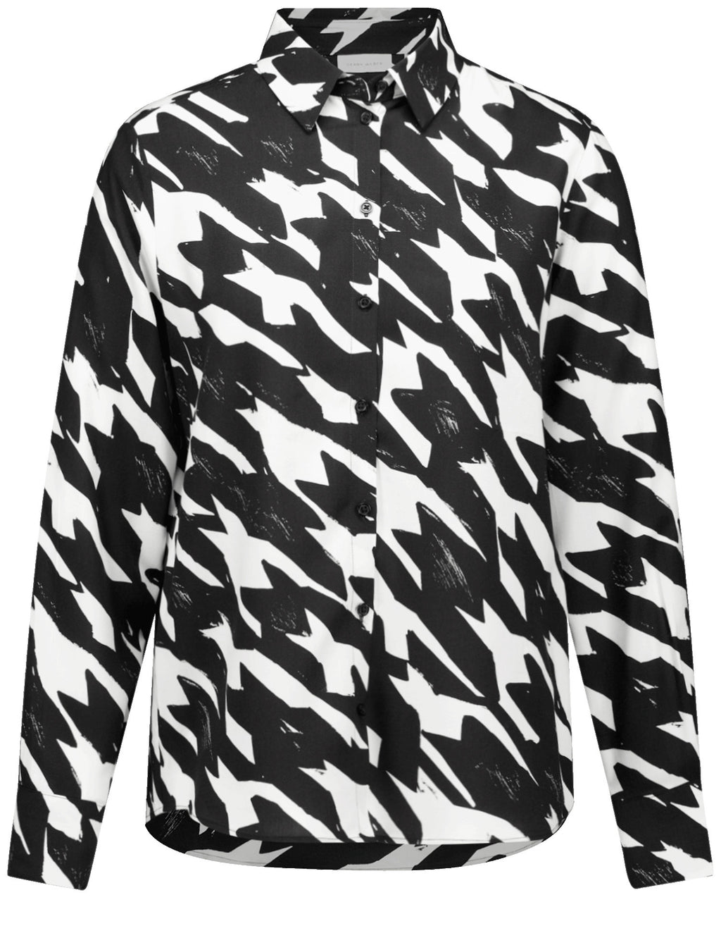 Symbiotic Red Print Blouse - Black/ecru Houndstooth