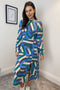 Cass Split Leg Midi Dress - Blue Mix Print