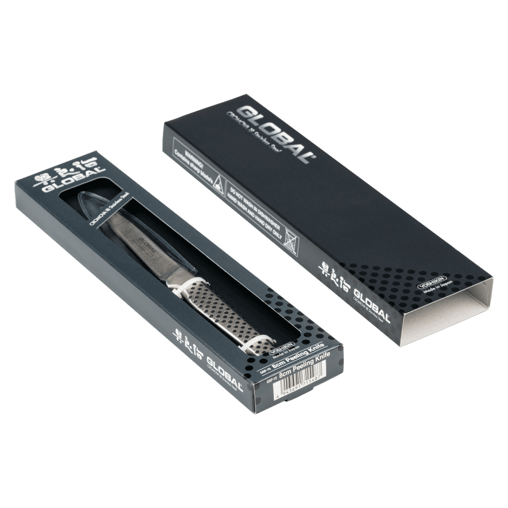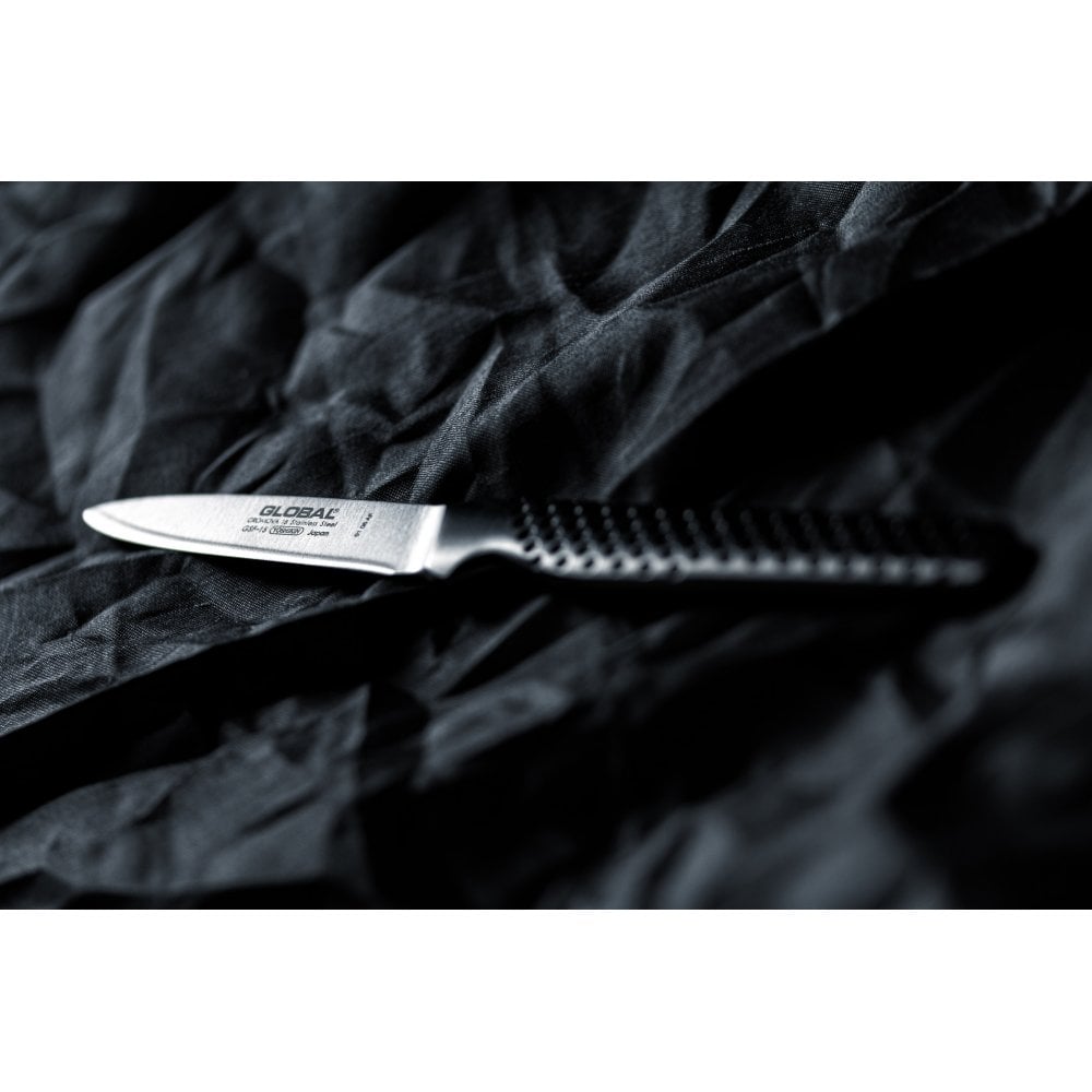 The GSF-15 is the most popular petty knife in the Global range and is very often found in set combinations. Its little 8cm blade is good for all those small kitchen tasks, peeling, cutting fruit and small delicate kitchen work. This knife can cover all the tasks of the other GSF range and is a classic all-rounder. Its fully forged blade is strong enough to get into and separate meat joints and can put up with a certain amount of twisting and levering, just don't use it as a screwdriver or to open jars of paint!