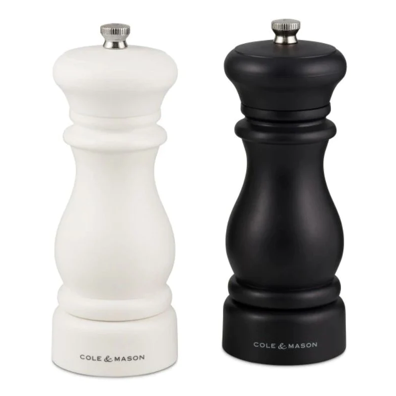 A traditionally shaped mill set made from hard wearing ABS. Instantly adds style to any dining table whilst remaining an invaluable every day kitchen tool. The hardwearing qualities of the mechanism ensure you will always receive a consistently outstanding performance. Easily refill your mills by simply unscrewing the knob on top and remove along with the nickel top. Fill up with your favourite salt and pepper, replace the tops and continue enjoying expertly seasoned food. Adjust the grind by tightening or loosening the knob on top. Use a coarse setting for steaks or tomato salad, a medium setting for pizzas and a fine setting for soups and sauces. Featuring Cole & Mason sharp ceramic mechanisms for an accurate grind, ensuring maximum flavour release from every turn. Designed and engineered in England, the hardwearing qualities of the mechanism ensure you will always receive a consistently outstanding performance.