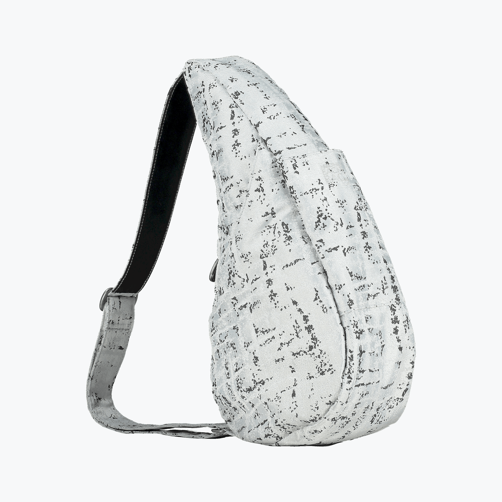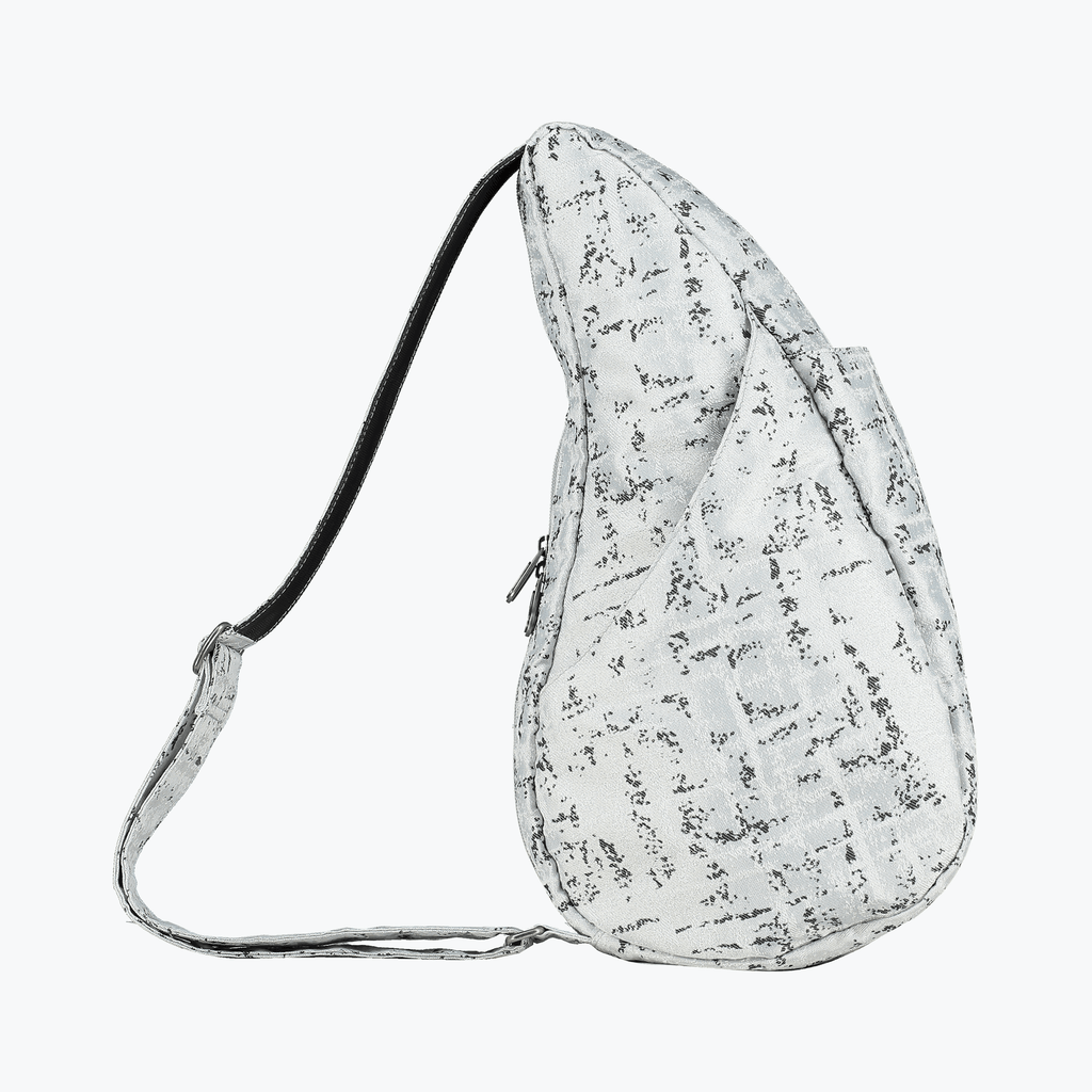 A contemporary monochrome weave with a gentle sheen gives this bag a stylish edge, with outside curved zipped pockets.