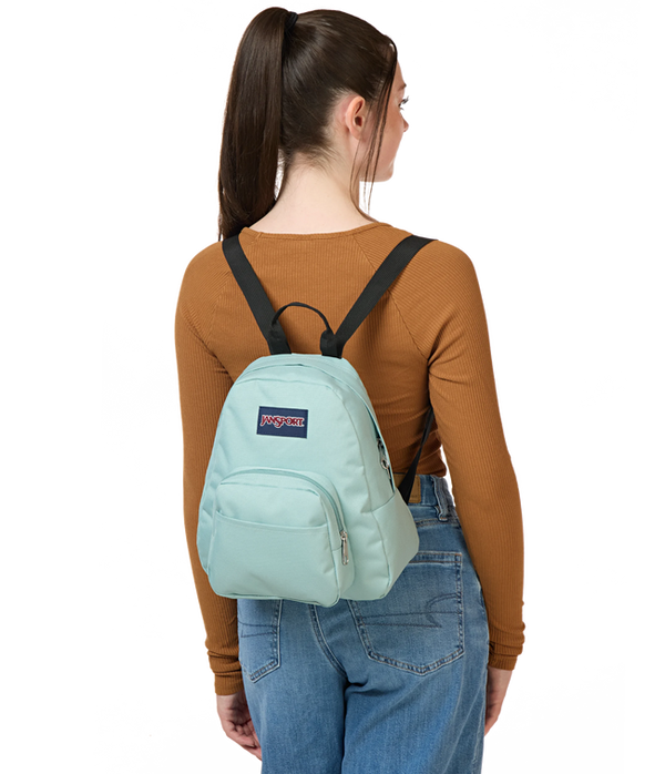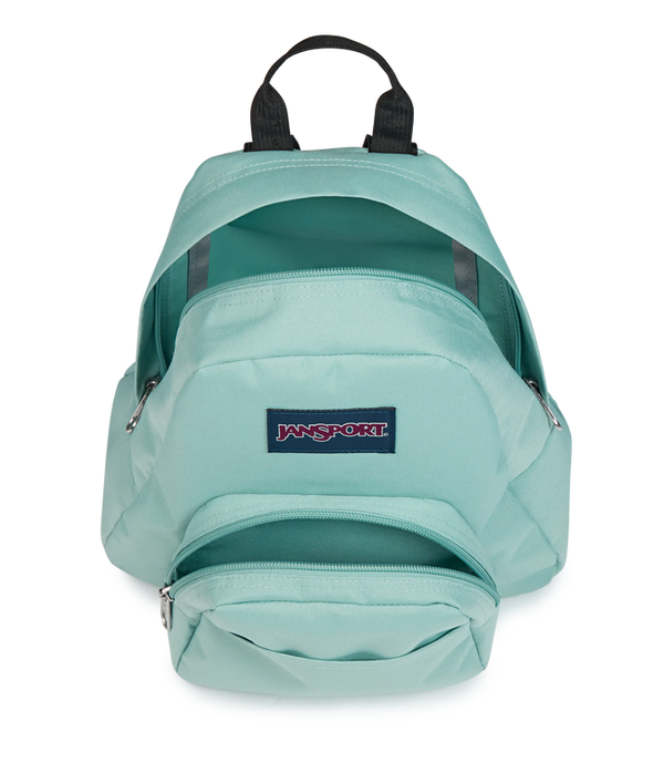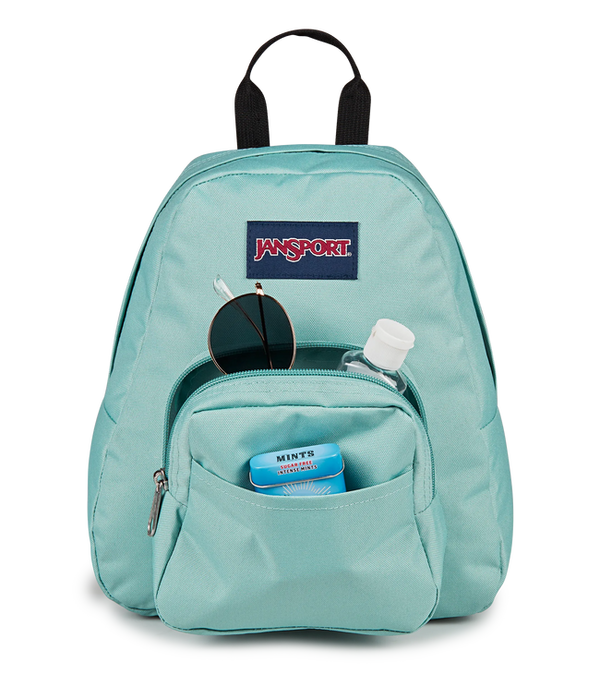 Small and light, the JanSport Half Pint is the perfect throw-on-and-go backpack. Features include a front utility pocket and key clip.