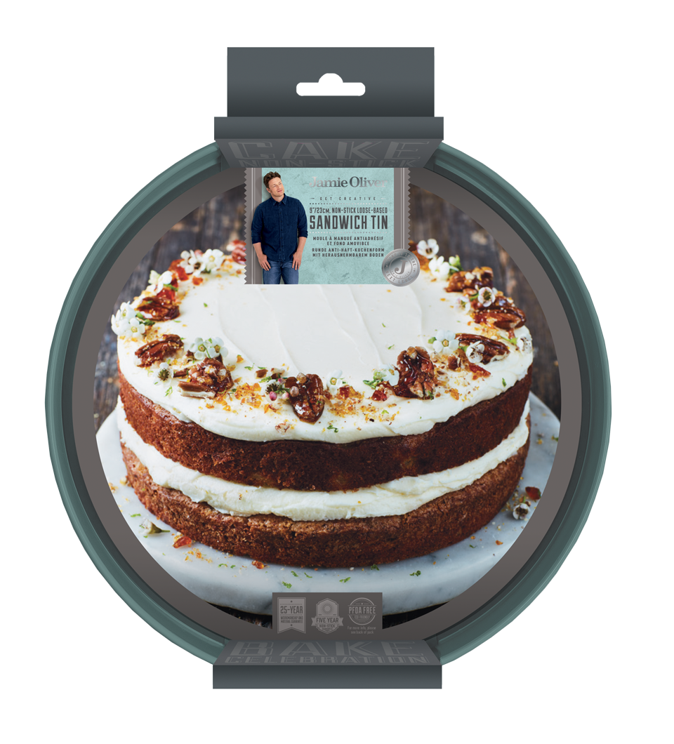 Jamie Oliver Cake Tin Round Sandwich, Loose base, Non-stick, Carbon Steel, Atlantic Green, 23cm (9")