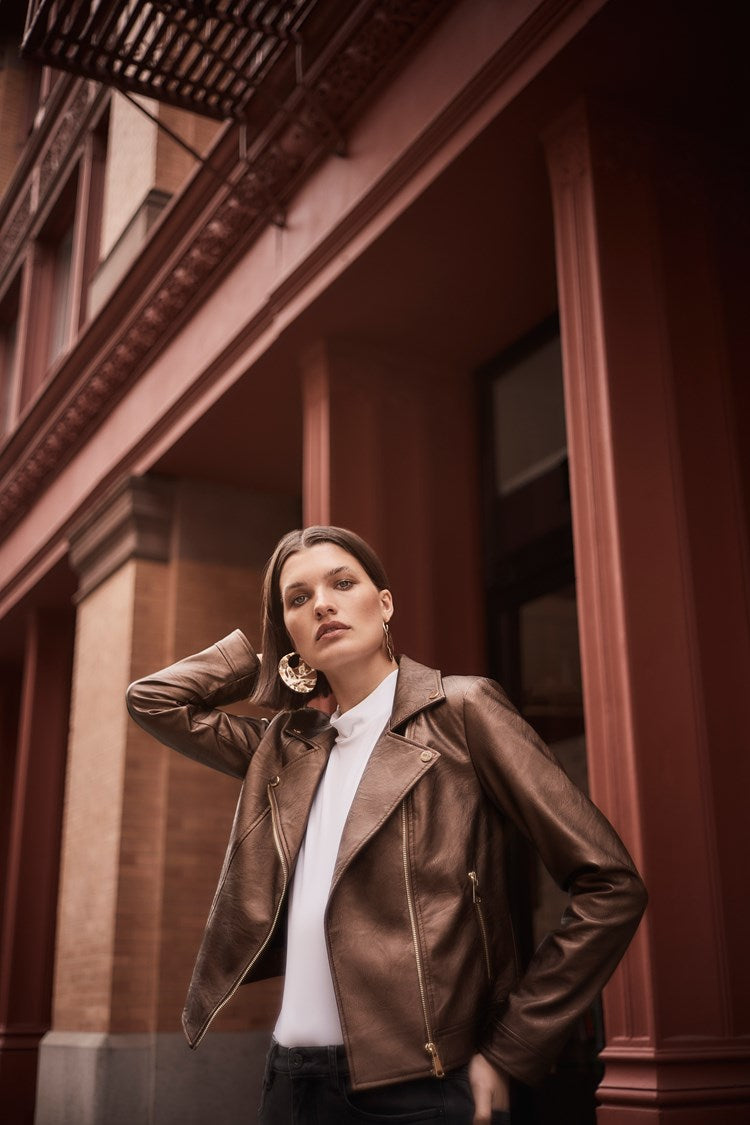 - Metallic faux leather material.