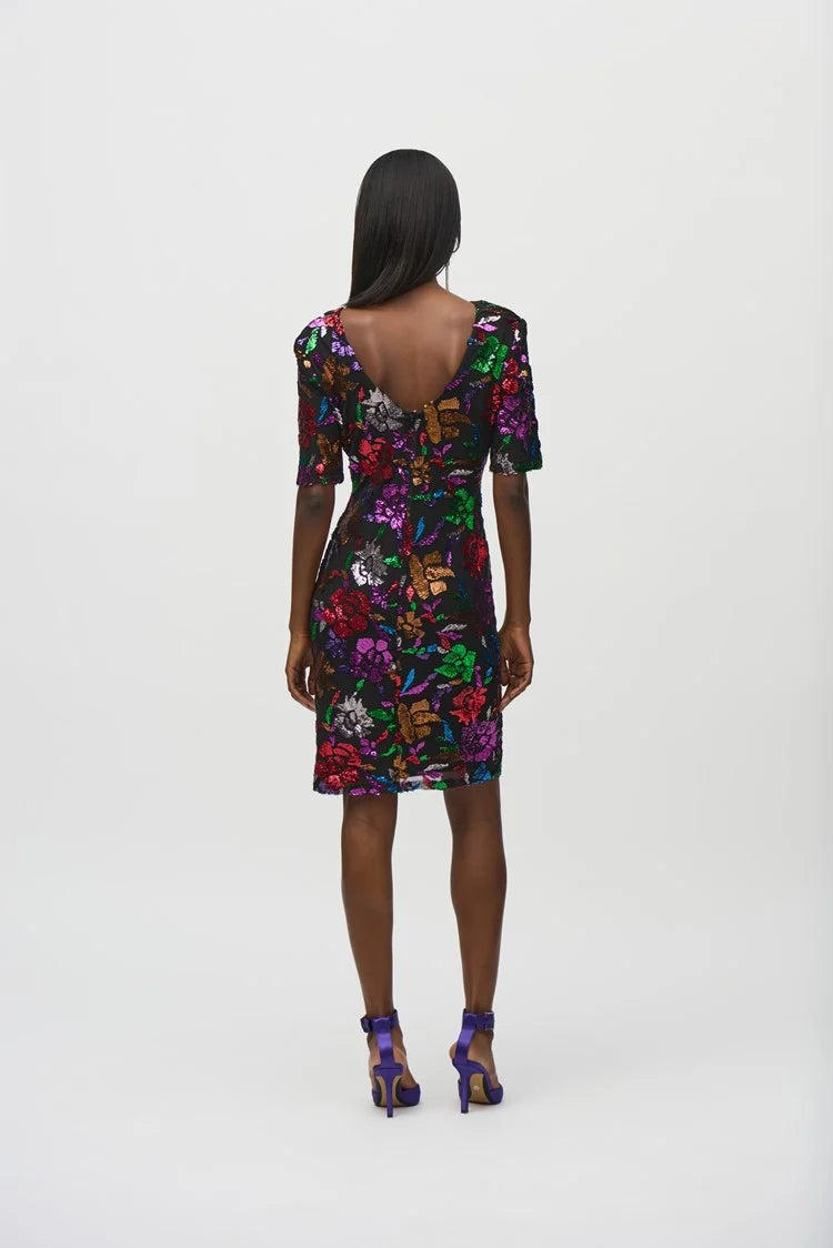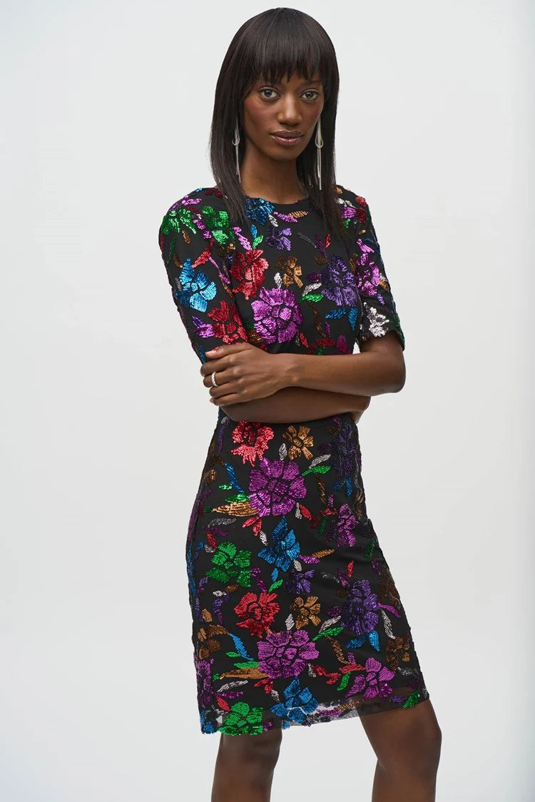 Floral Print Sheath Dress - Black/multi