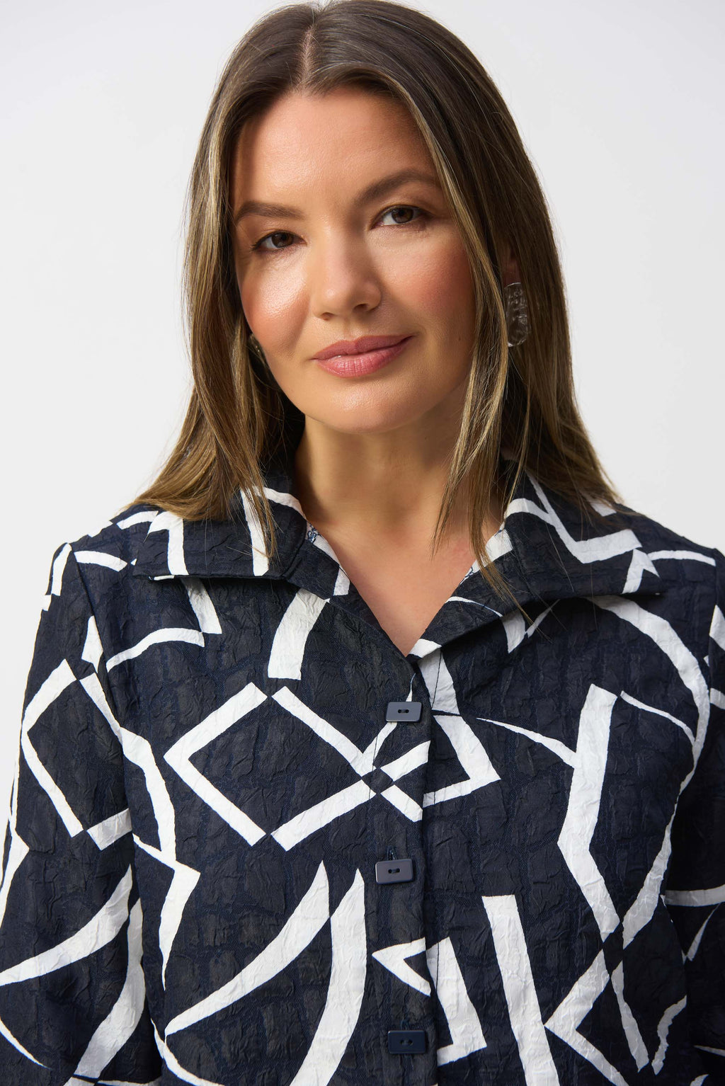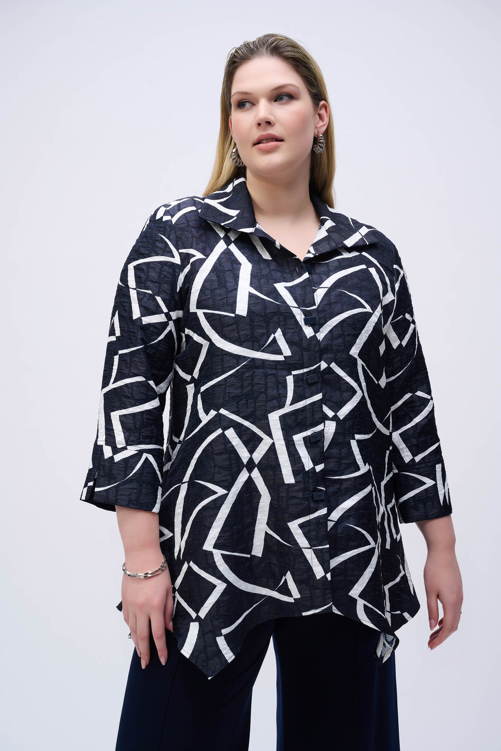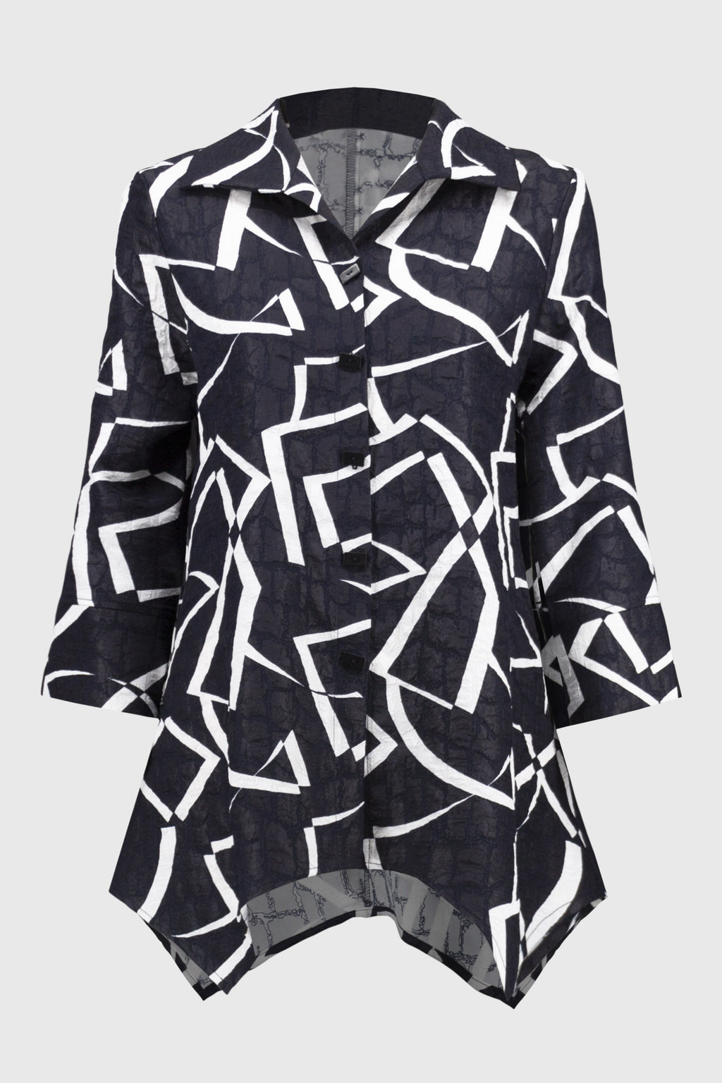 - Three-quarter cuffed sleeves