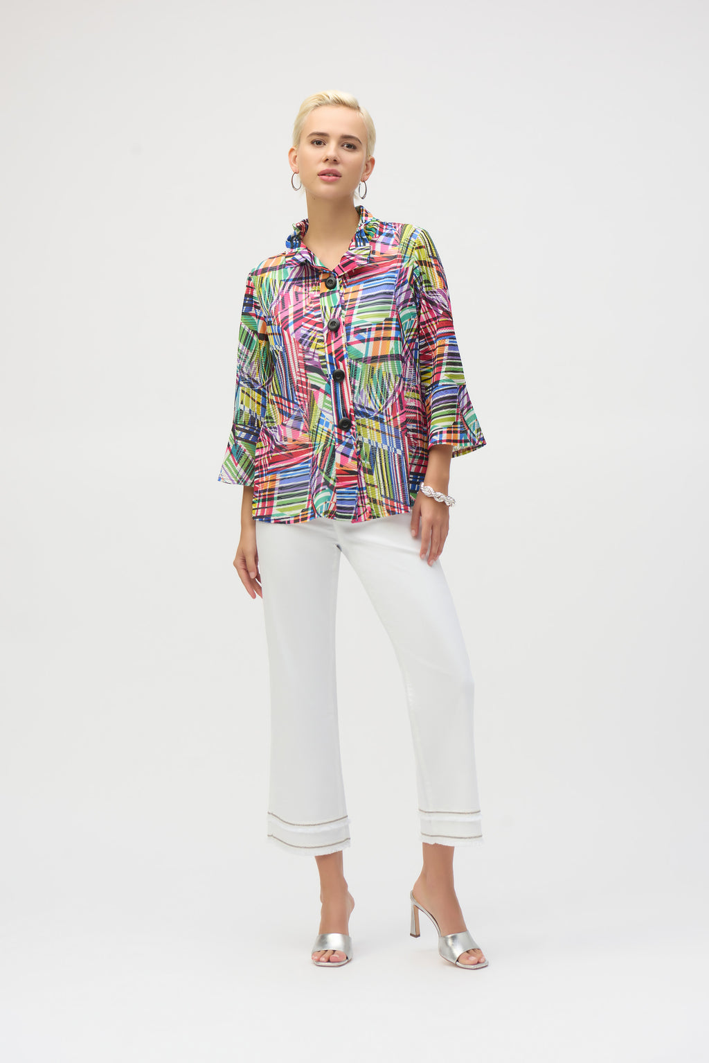 - Three-quarter cuffed sleeves