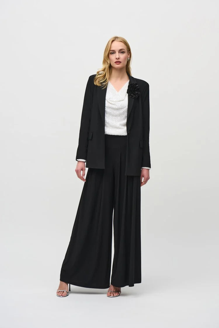 - Wide leg silhouette.