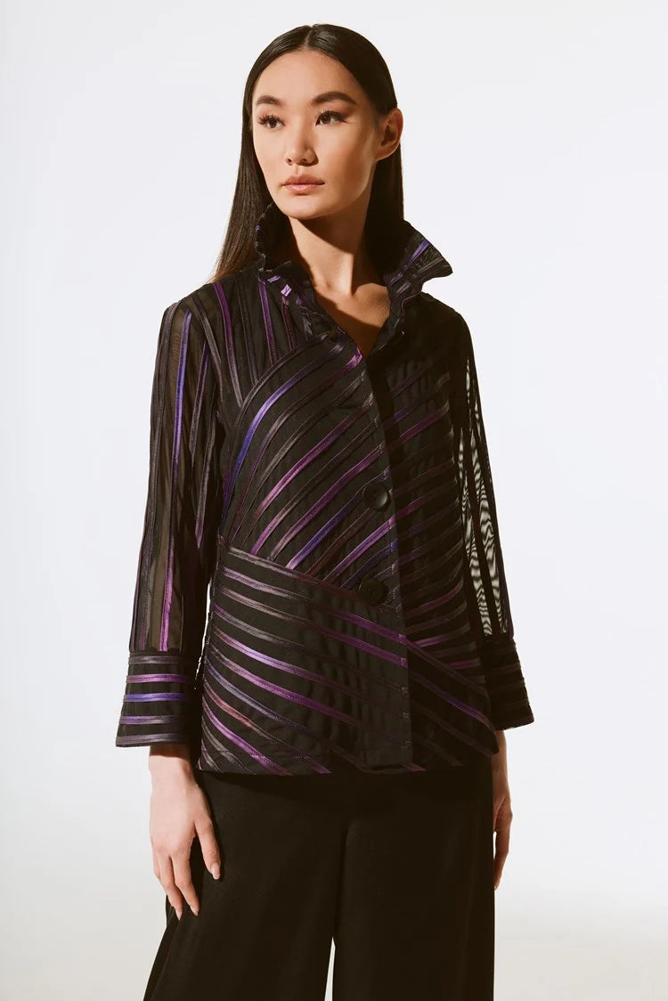 - Printed soutache on mesh fabric.