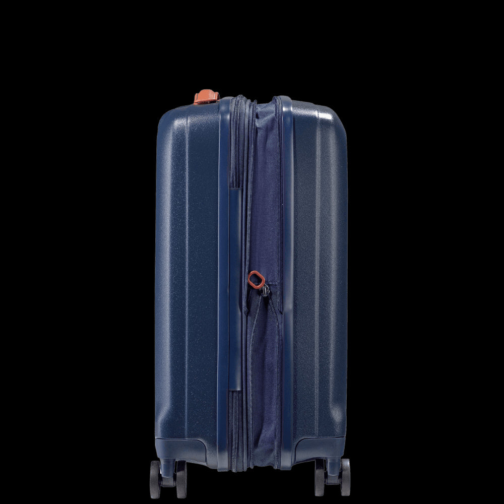 Cabin suitcase 55 cm high and expandable +20% volume. 4 ultra-quiet and resistant wheels. 2 full-grain cowhide leather carrying handles.