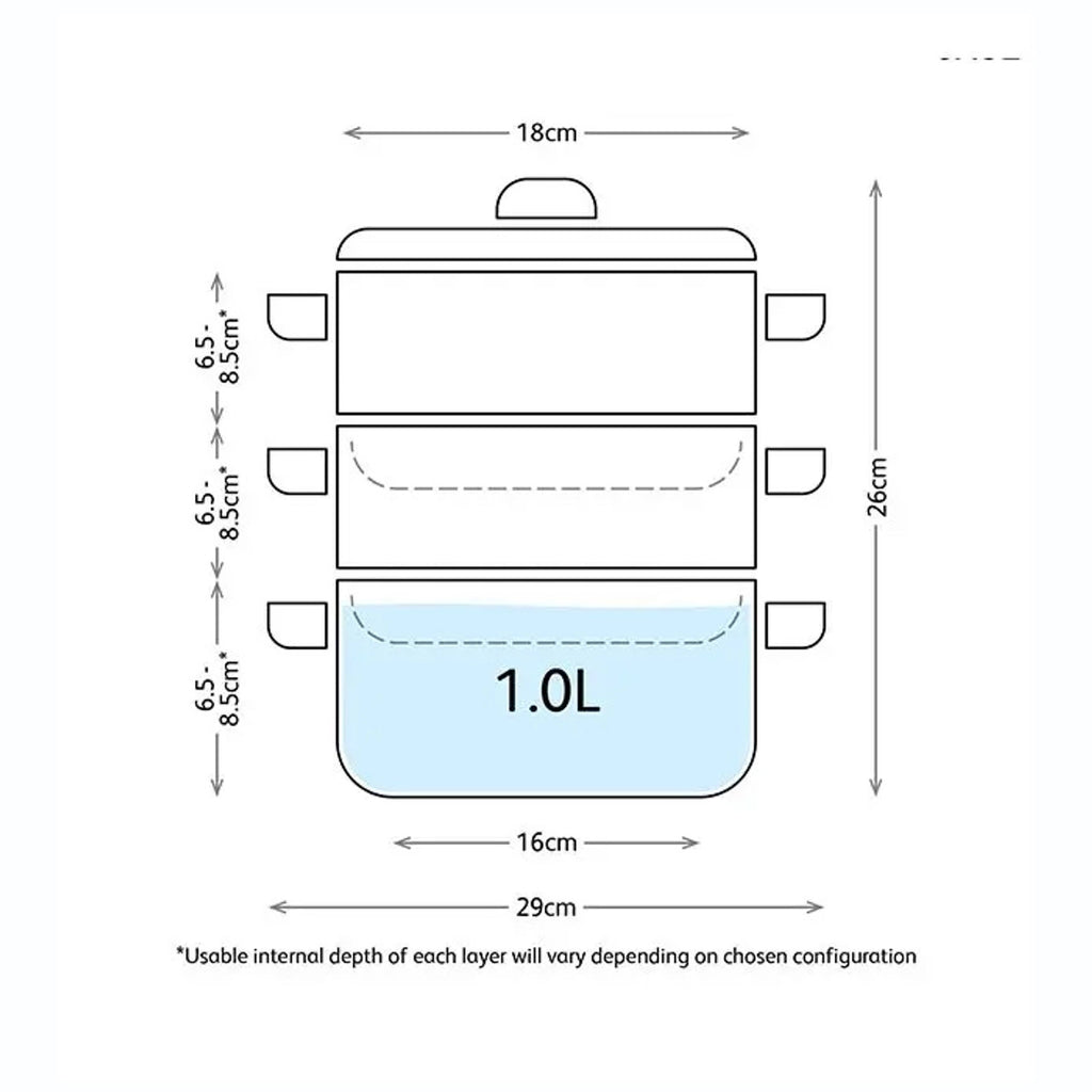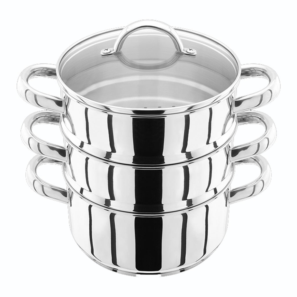 4 interchangeable pieces, use in any configuration - base pan, 2 steaming tiers and glass lid