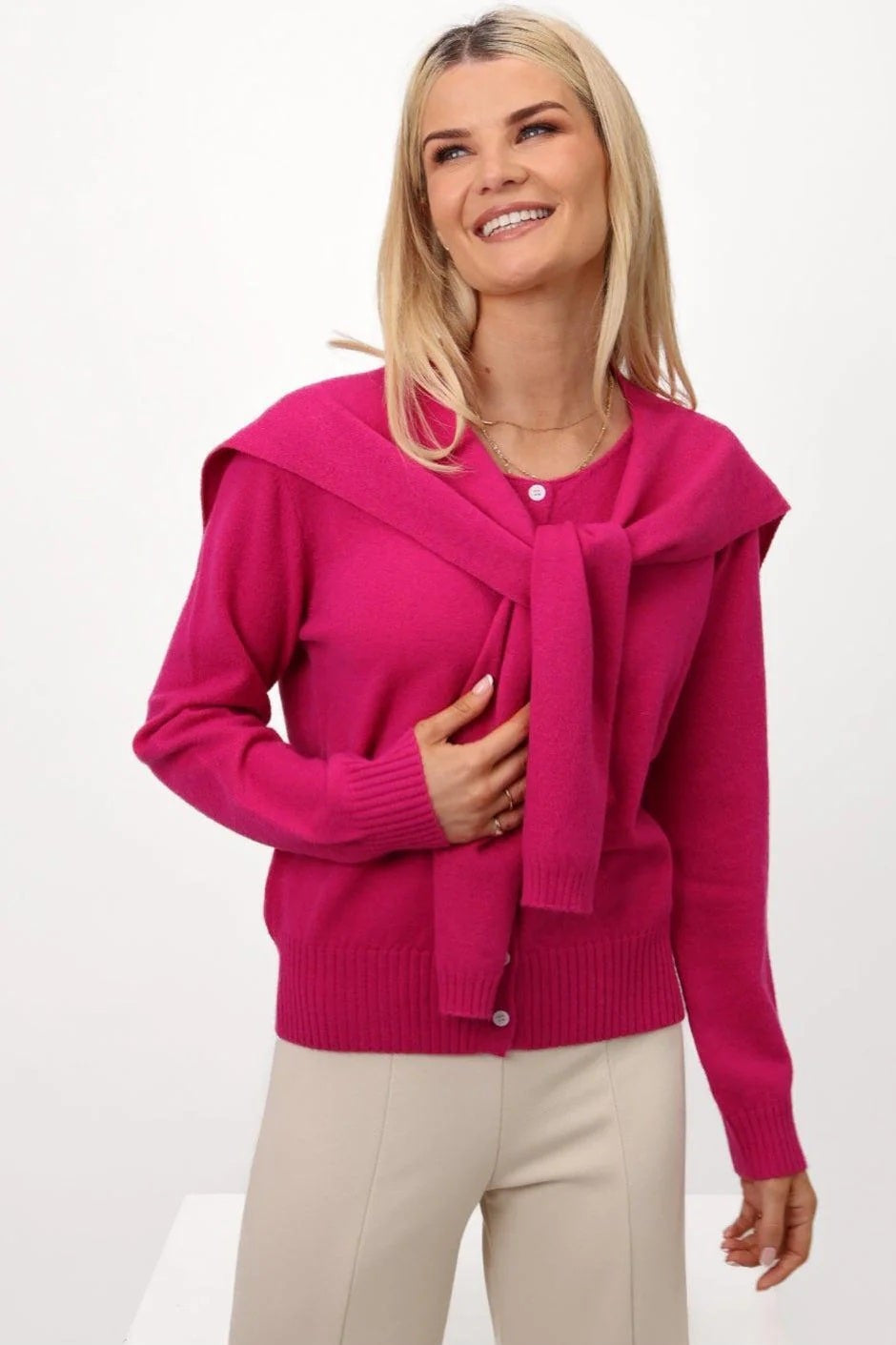 - Button-up cardigan.