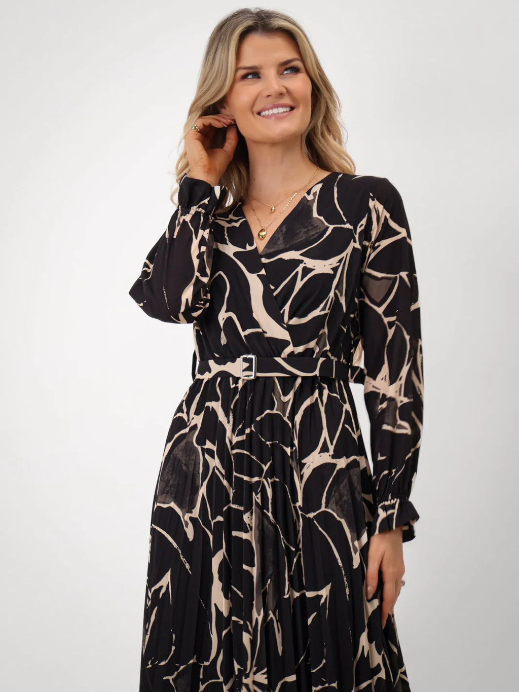 • Cinched waist with a stylish belt to enhance the silhouette