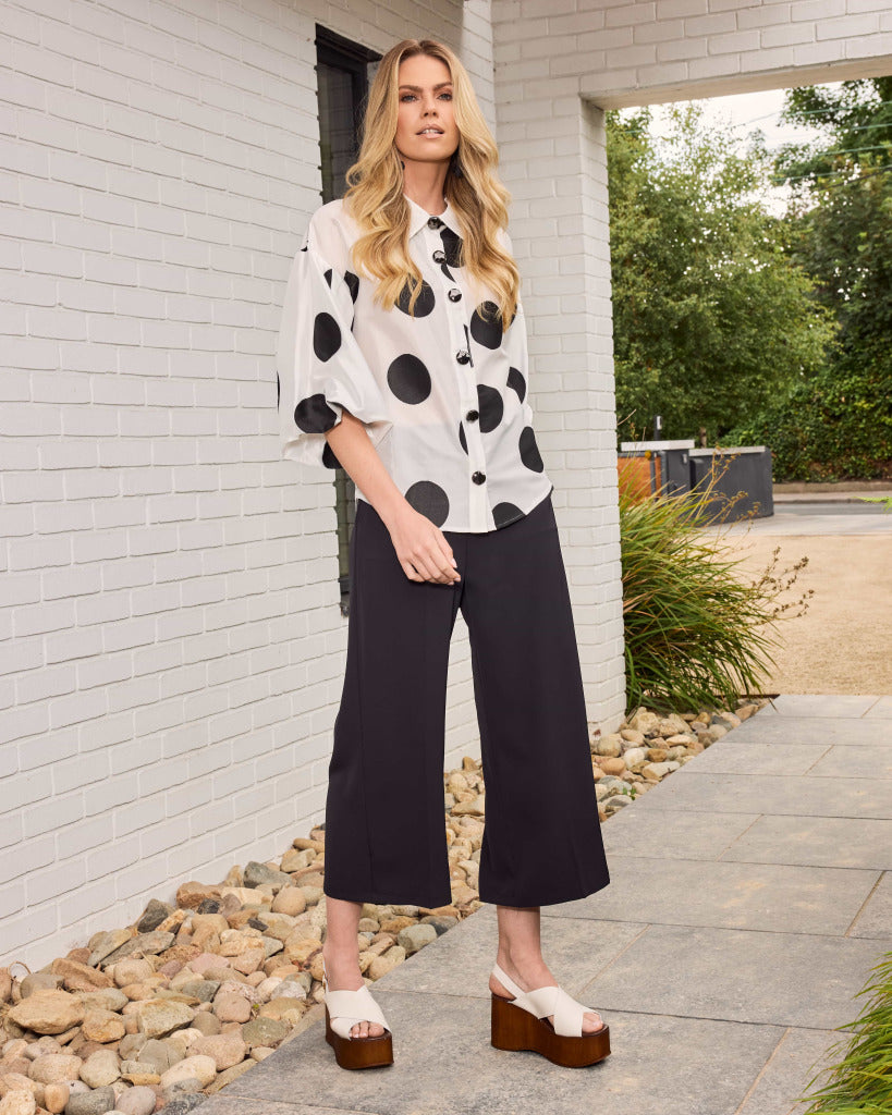 Spot Puff Ball Sleeve Blouse - Black/off White