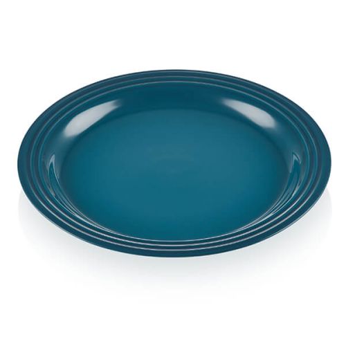 A colourful and contemporary addition to any modern kitchen or dining table, the Le Creuset Stoneware 27cm Dinner Plate features a recessed base to contain liquids and a raised rim featuring the signature three-ring branding. This plate is oven, microwave and dishwasher safe so is perfect for a busy home for both everyday use or entertaining friends and family.