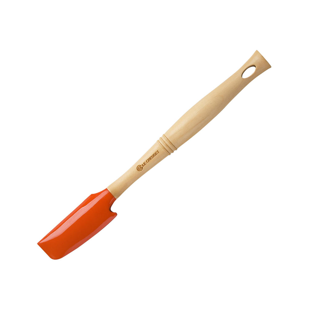 The Silicone Professional Jar Scraper has a long narrow blade with dual edges to cleanly scrape small cans and jars, and features a rim swipe for bottles. This Jar Scraper is also excellent as a cutting tool for cakes and pastries.