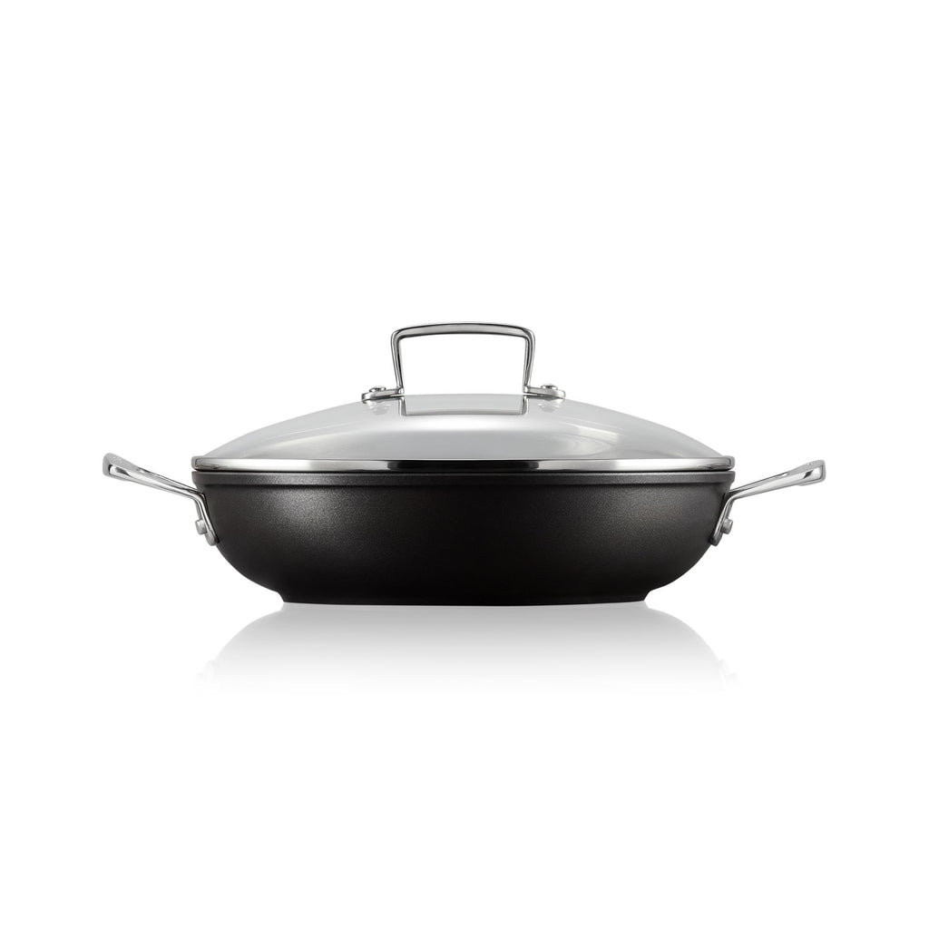 NEW from Le Creuset, their best-ever non-stick coating. Now 4 x stronger*, the new 3-layer reinforced non-stick coating on the inside of every Le Creuset Toughened Non-Stick is now even more durable and resistant to abrasion from metal utensils. The Toughened Non-Stick Shallow Casserole is perfect for everyday cooking for a variety of quick and tasty meals but is equally at home being taken straight from the hob to the table for an informal supper with friends. Toughened Non-Stick is a sleek range of versatile pans perfect for everyday use.