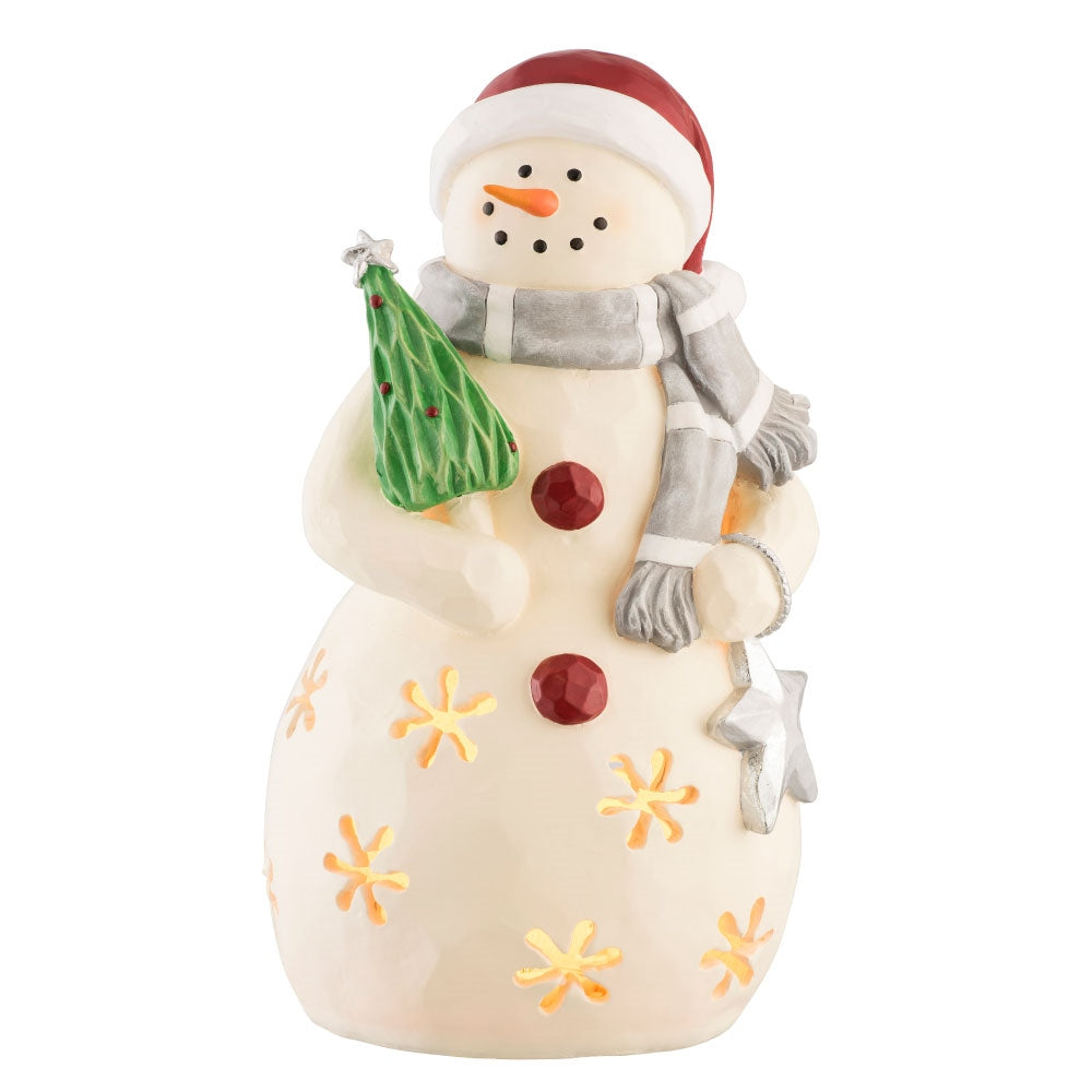 This Mrs Snowman LED is sure to bring your display to life. With a soft LED light, powered by battery, this Mrs Snowman will give your winter display a warm glow. Look on as she stands full of Christmas Spirit. Using neutral tones this snowman will fit in with any decor.