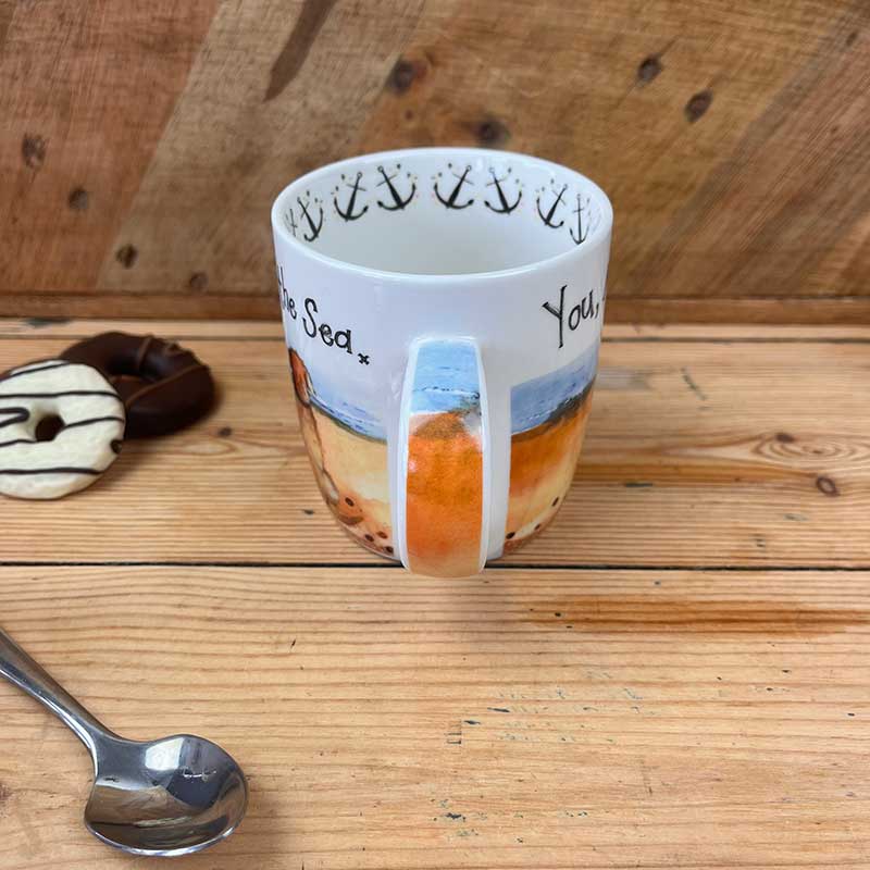 This Alex Clark mug will make a lovely addition to your kitchen. Perfect for coffee, tea and other hot drinks. Features illustrations around the inside rim and down the handle.
