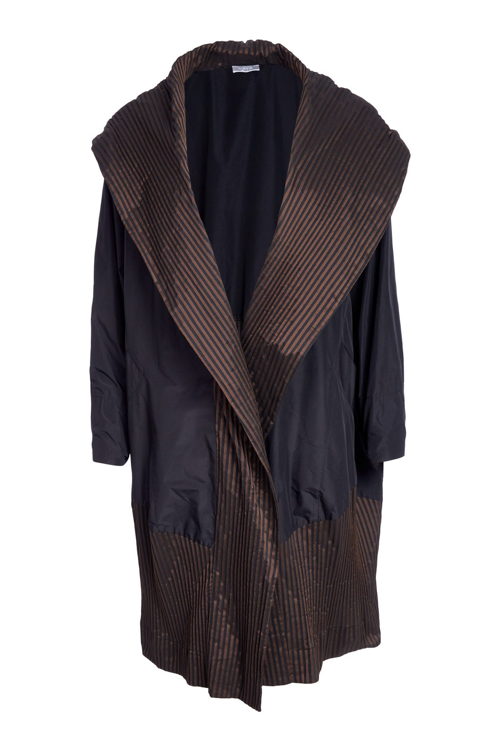 Contrast Stripe Hem LongLine Jacket - Black/cocoa