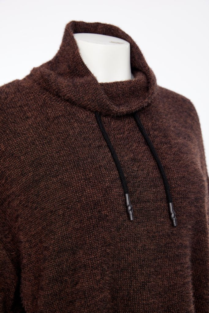 Funnel Neck Mohair Look Top - Cocoa