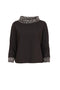 Wool Mix Print Neckline Top - Black/sand