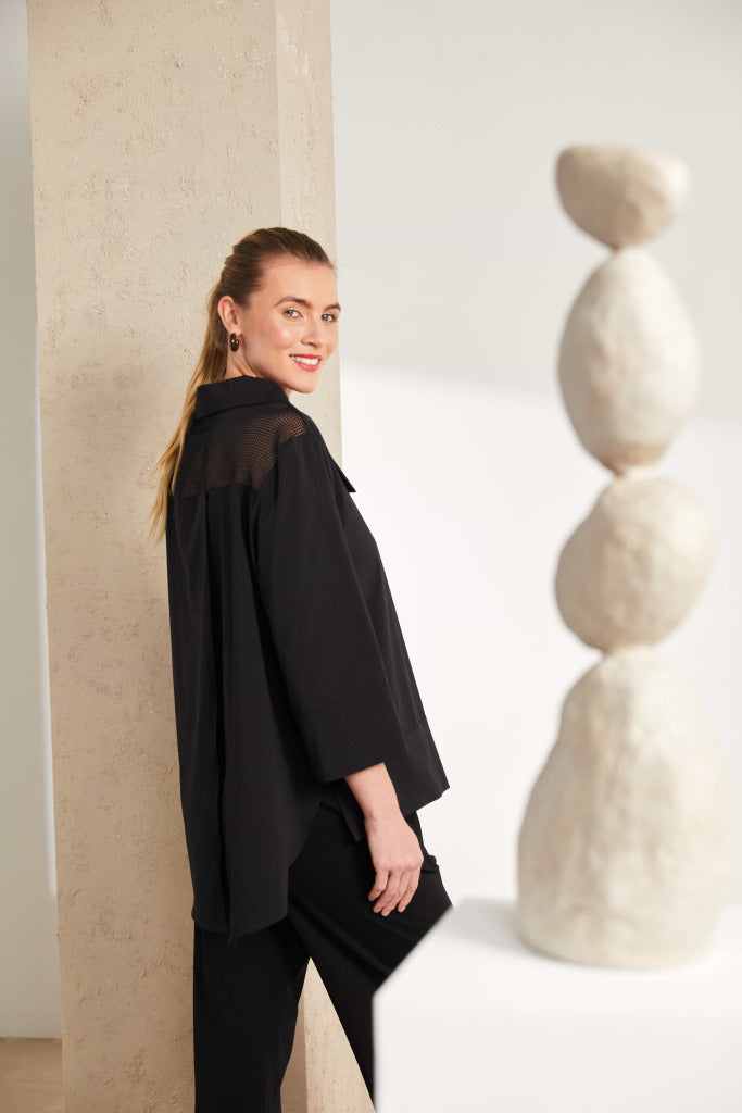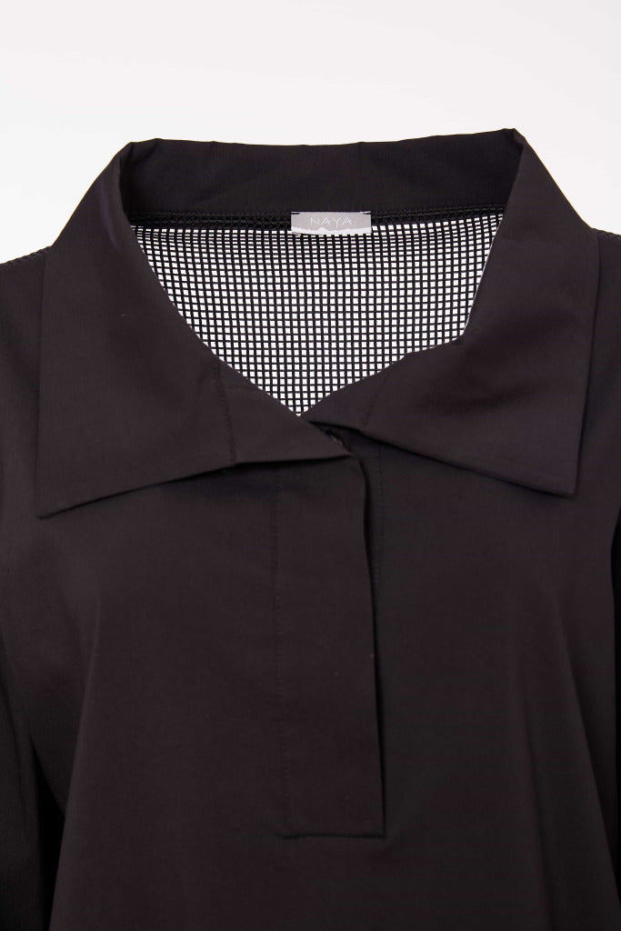 - Full button placket.