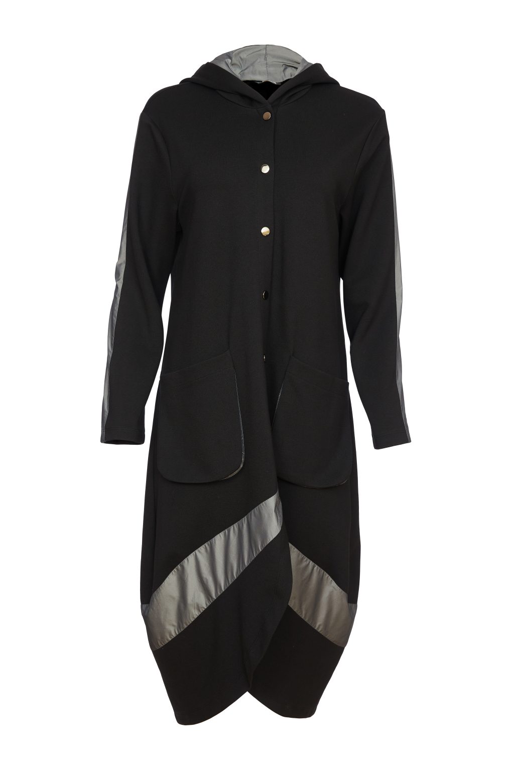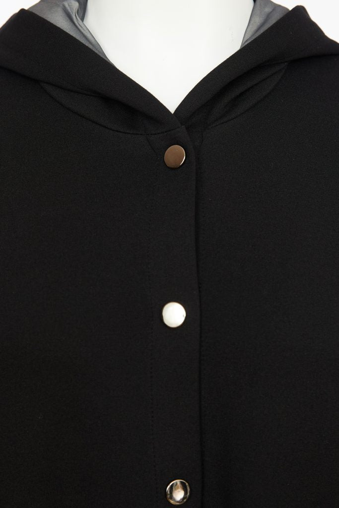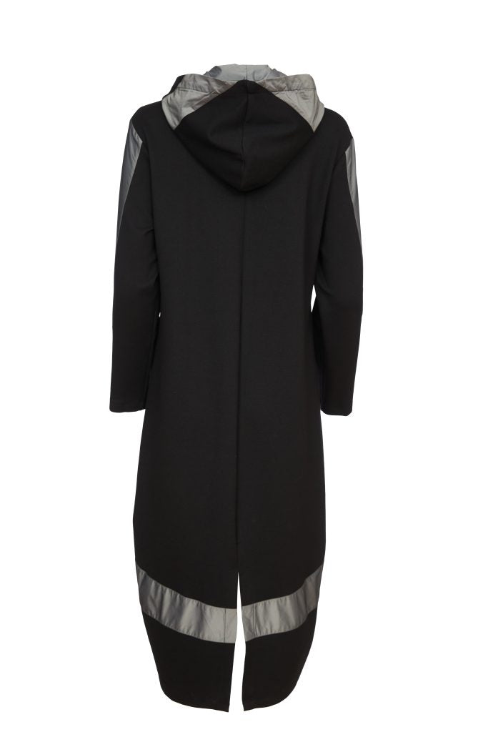 Contrast Hempanel Hooded Coat - Black