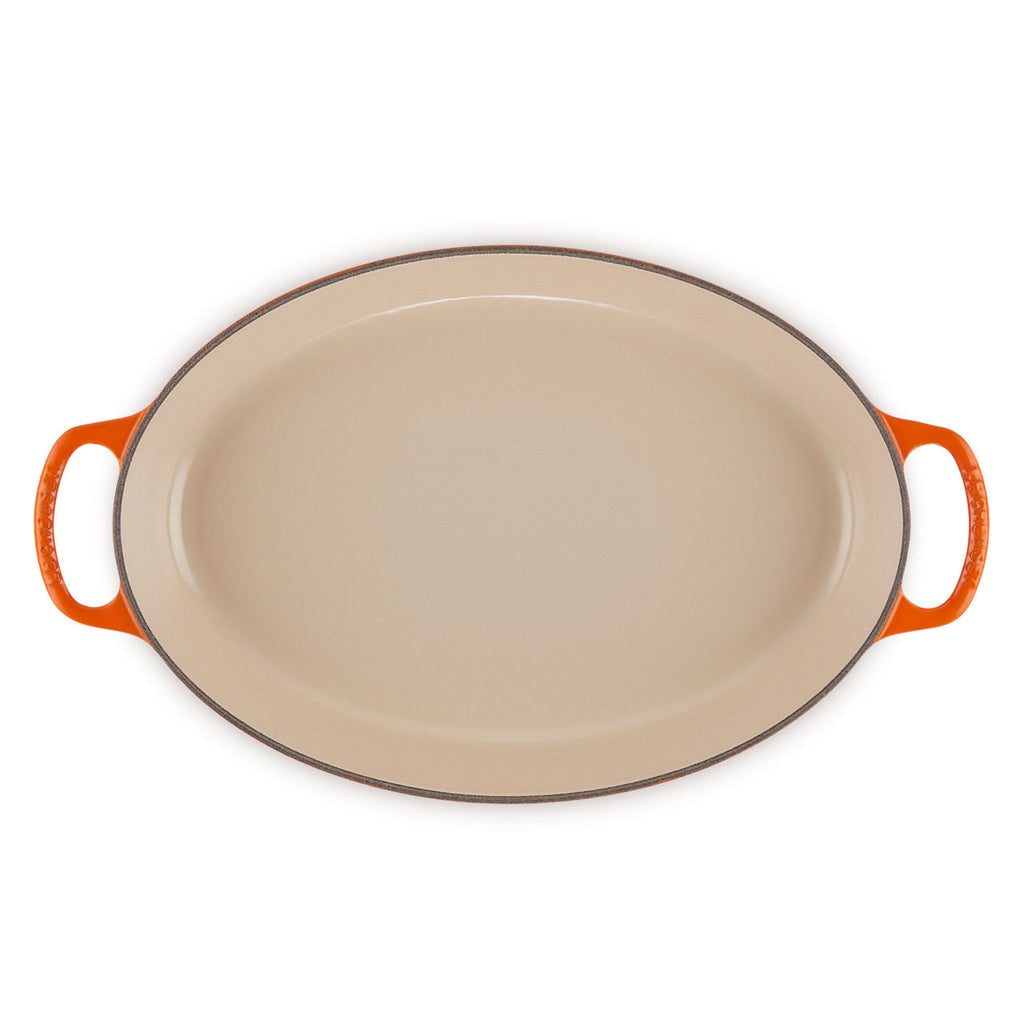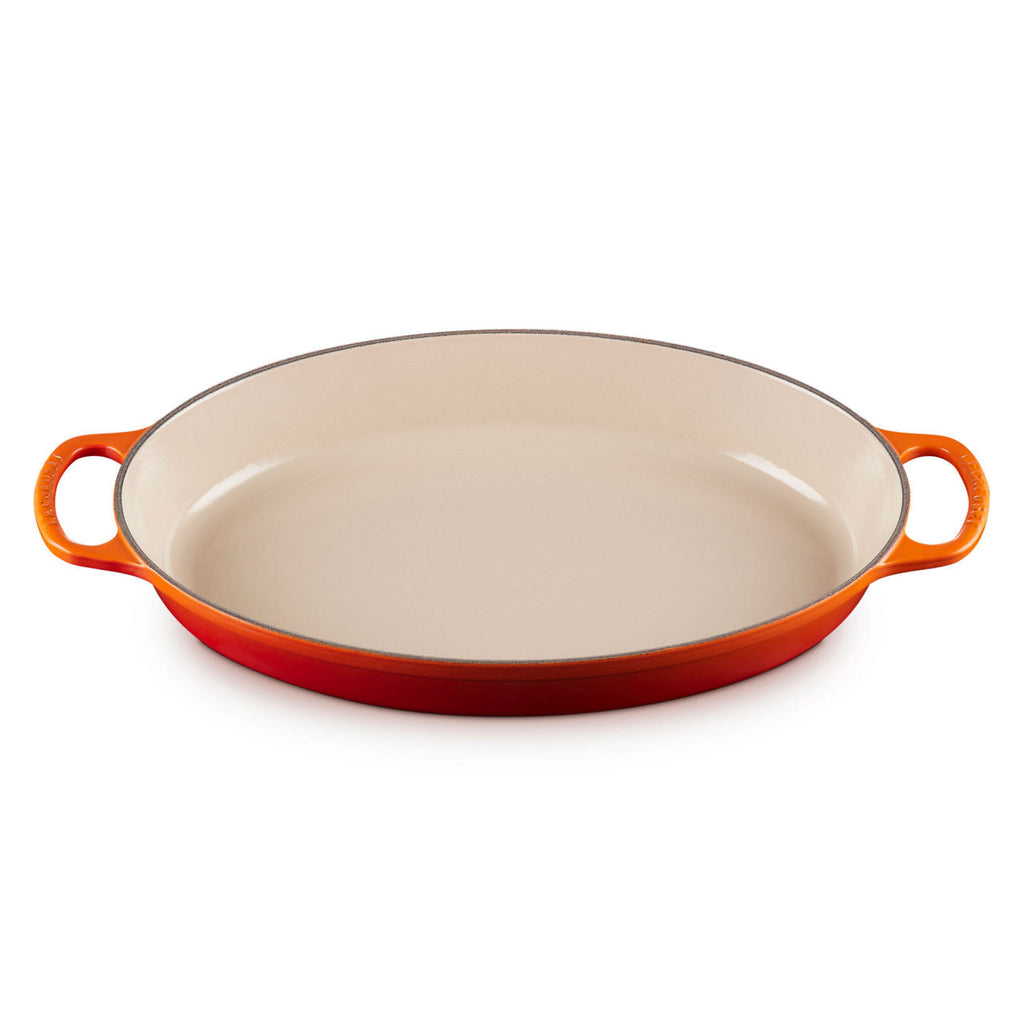 Have a look at the Oval Gratin Dish from Le Creuset. This oval baking dish is ideal for baking, roasting and steaming fish and vegetables. When roasting meat, the dish can be placed on the hob for deglazing a gravy or sauce. Featuring the larger Le Creuset Signature handles for easier lifting and carrying, this sturdy and resistant piece will withstand the high searing temperatures of the oven and stand the test of time. It makes a perfect serving dish too as cast iron keeps food warmer for longer at the table.