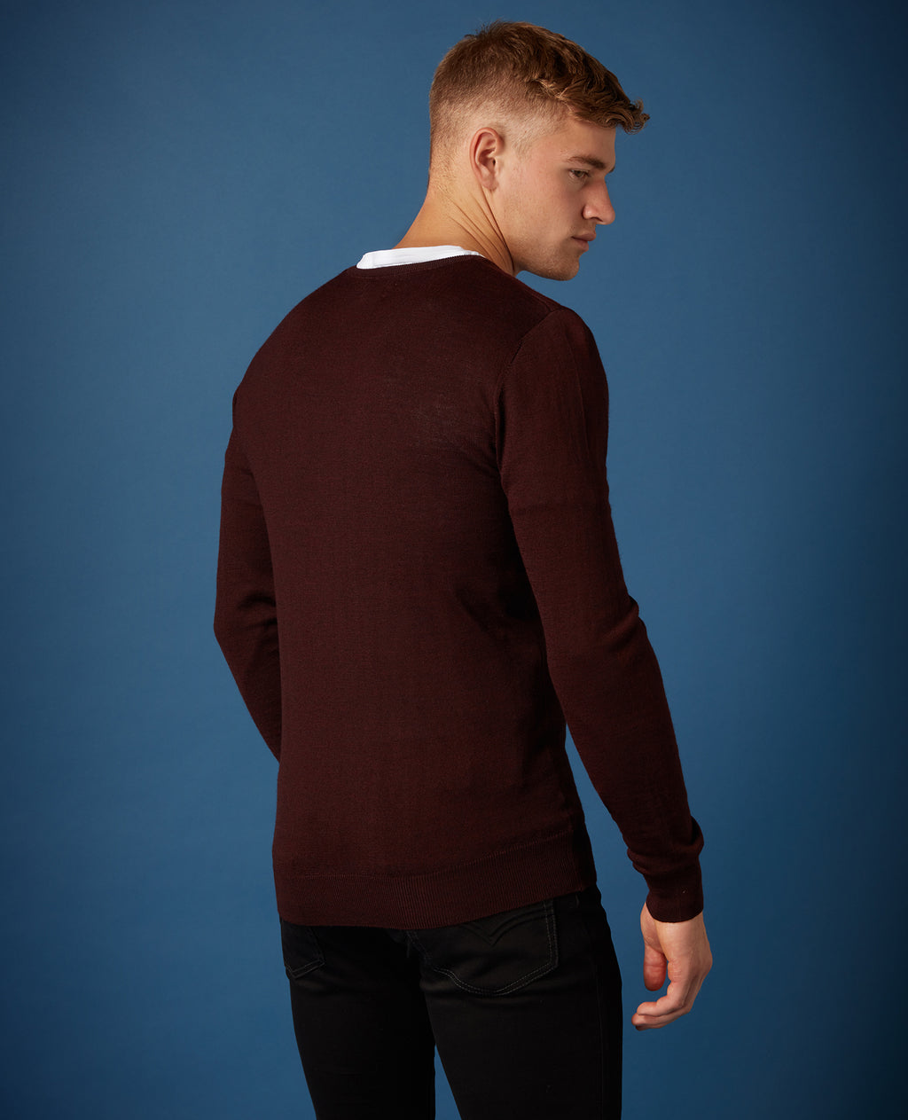 Plain V-Neck Sweater - Wine