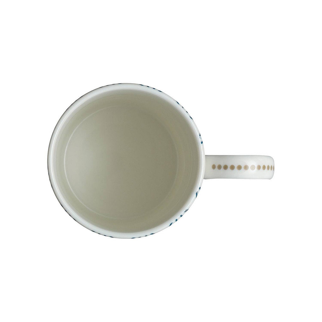 Drawing inspiration from Art Deco influences of bold geometric shapes, sweeping curves and sunburst motifs, the Denby Modern Deco collection features rich deep blue, warm gold accents and brass metallic touches. This decorated small mug features a striking blue and gold decoration. Style with the Denby White Arc Porcelain Collection.