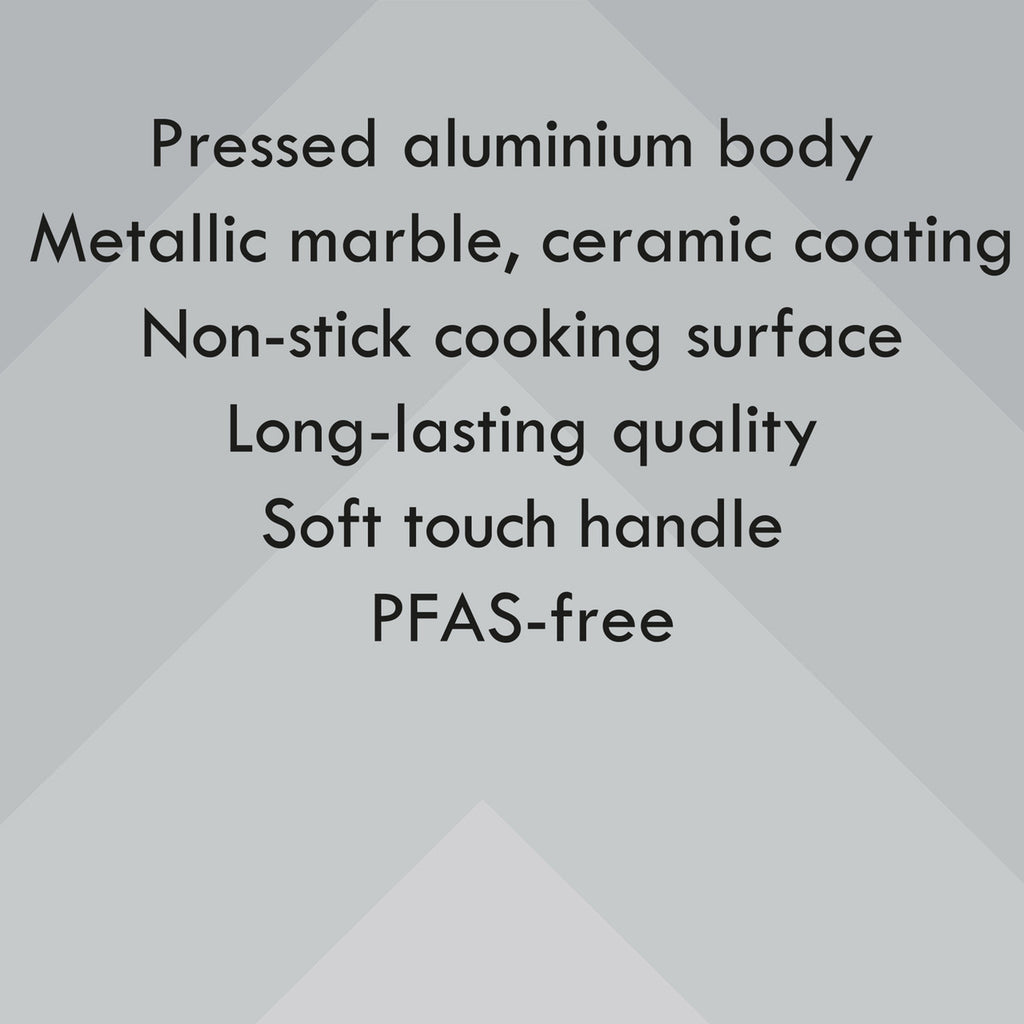 - The metallic marble ceramic coating offers even heat distribution and allows you to cook at higher temperatures for faster cooking.