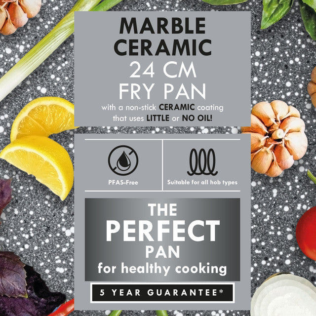 - Perfect for everyday cooking, this Progress Marble Ceramic 24 cm frying pan features a non-stick surface for easy cleaning after use.