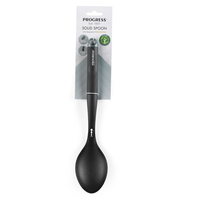 - An essential addition to any kitchen, this Progress nylon solid spoon with soft touch handle is ideal for serving and stirring.