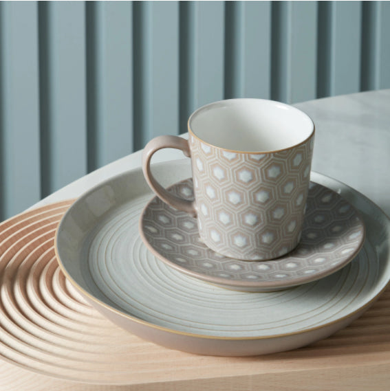 The new shape artisan coupe plates are designed to make food look beautiful. The steep sides and internal pattern means this plate is beautiful as well as versatile. Perfect as a plate to use every day or a piece for serving. Layer with a medium plate for a perfectly matching place setting or use one of the smaller accent patterned plates to create your individual collections.