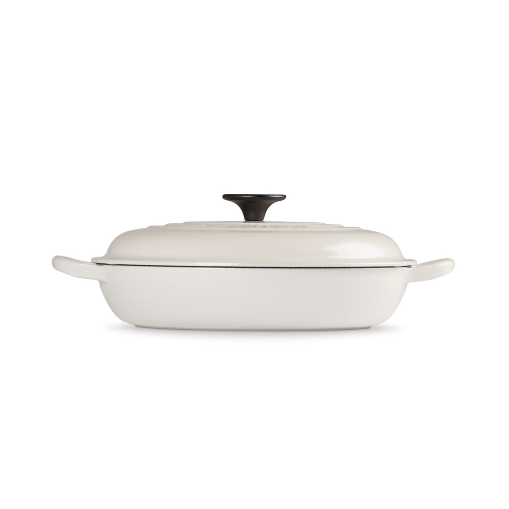 With a flat shape and shallow sides, the Le Creuset Shallow Casserole is ideal for browning meat and vegetables, simmering stews and even stir frying and baking. An everyday kitchen hero, use it as a pan or casserole. This versatile piece is perfect for oven dishes as well.