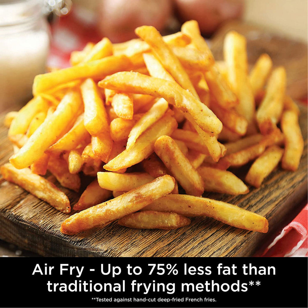 - Air fryer mode cooks with up to 75% less fat than traditional frying, so you can enjoy your favourite treats without the guilt
