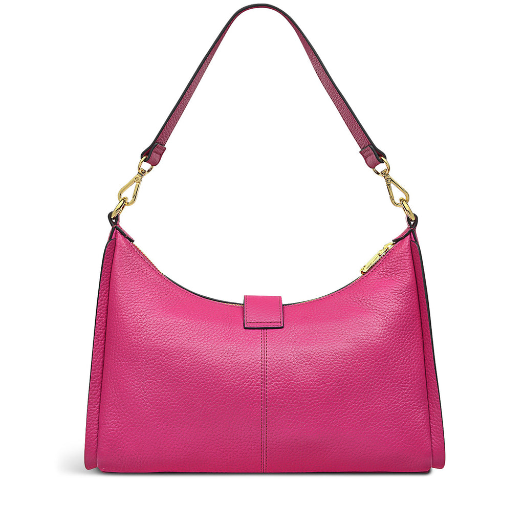 - Leather tab with push-lock hardware.