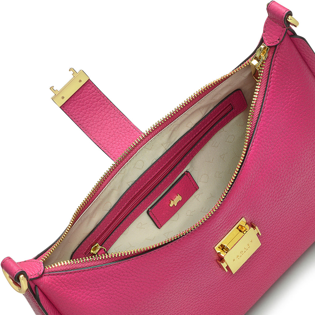 - Interior zip and slip pockets.