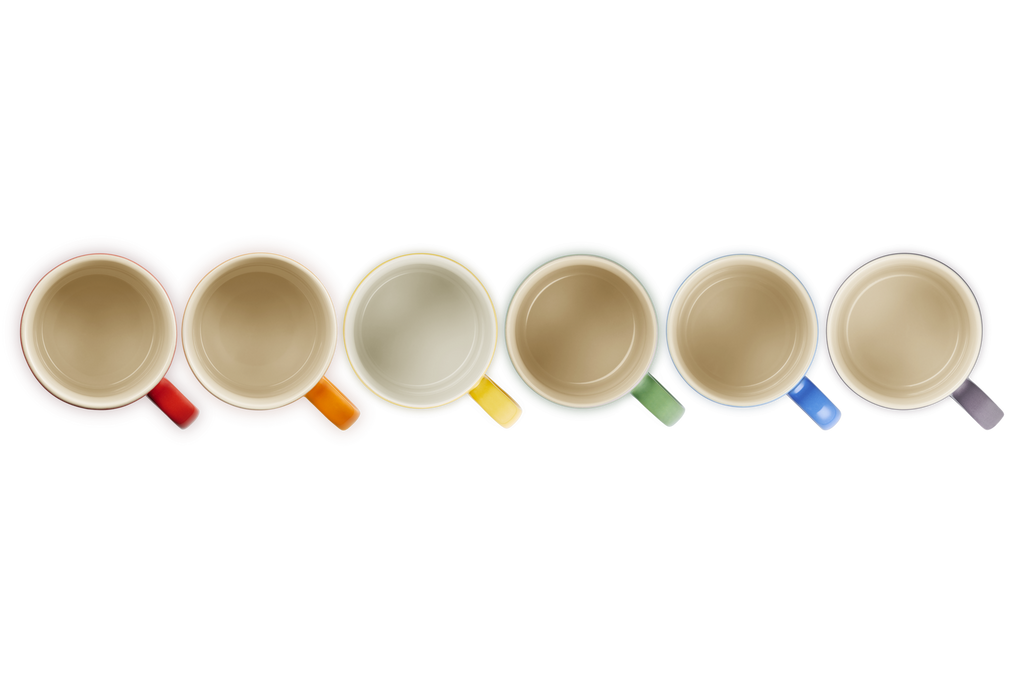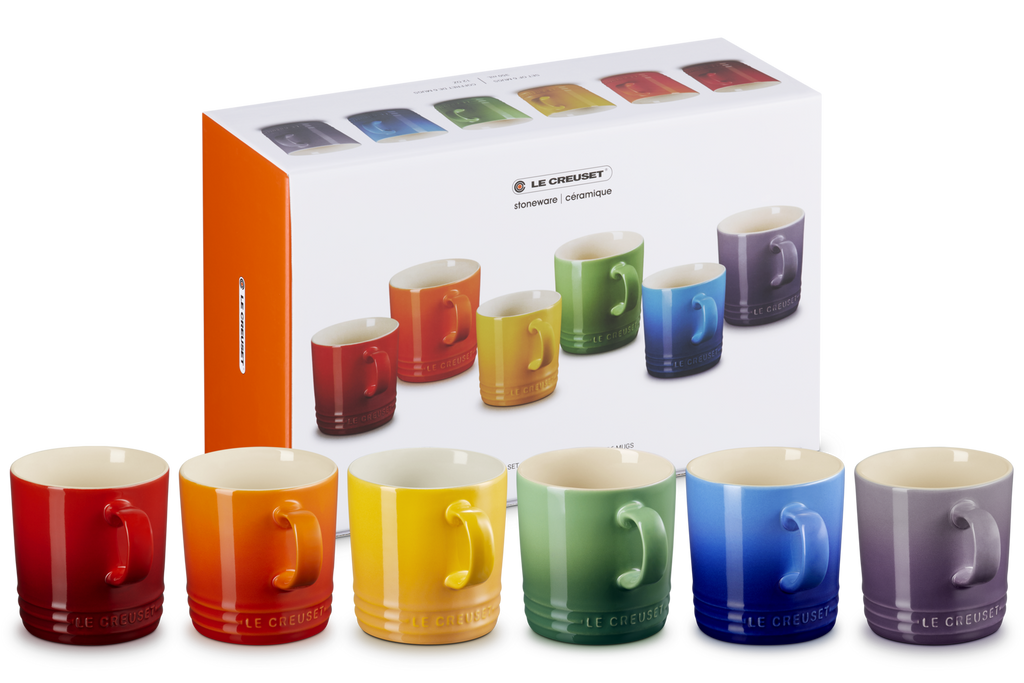 Bring a splash of colour to your kitchen with this vibrant Rainbow Set of 6 Mugs. Expertly crafted from premium stoneware, each mug showcases one of Le Creuset's iconic hues- Cerise, Volcanic, Nectar, Bamboo, Azure, and Ultra Violet- making every sip a stylish celebration of colour. Perfect for brightening up your day, one cup at a time. Made from specialist clays, the stoneware maintains even temperature and is exceptionally strong and durable, with a scratch resistant glaze that is easy to clean.