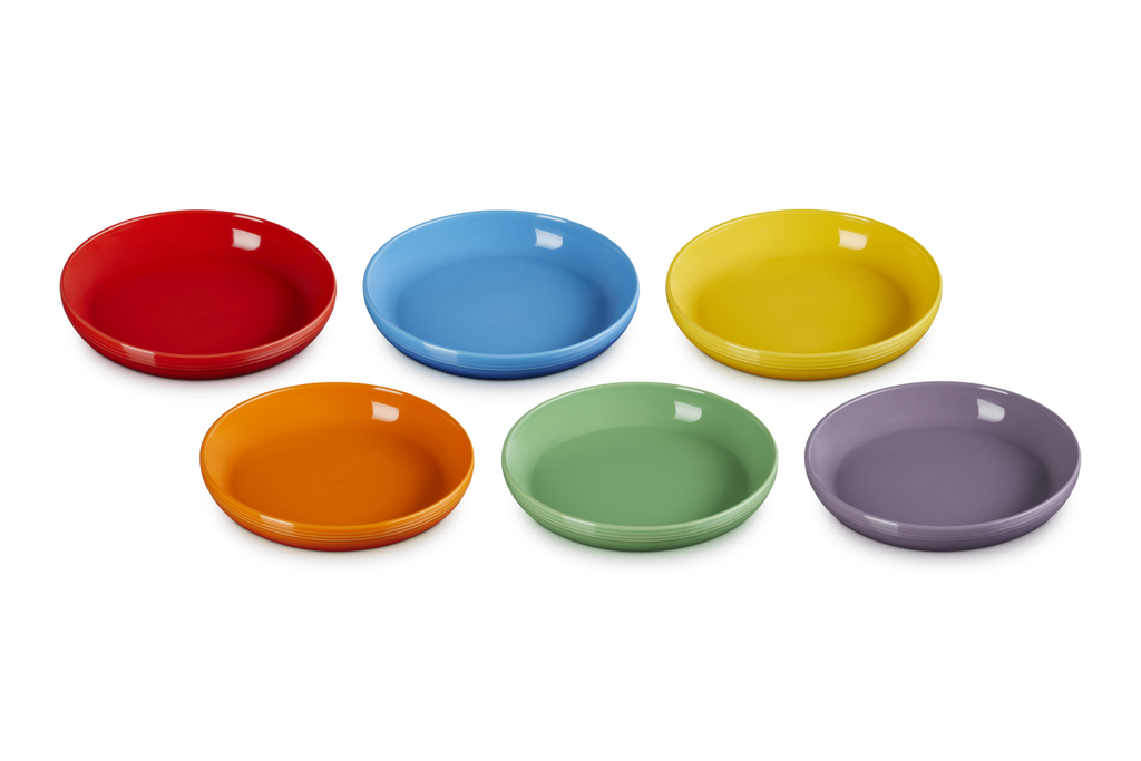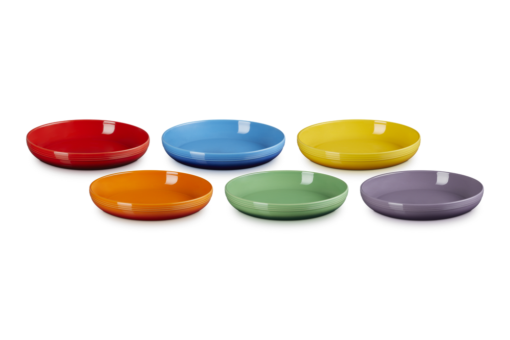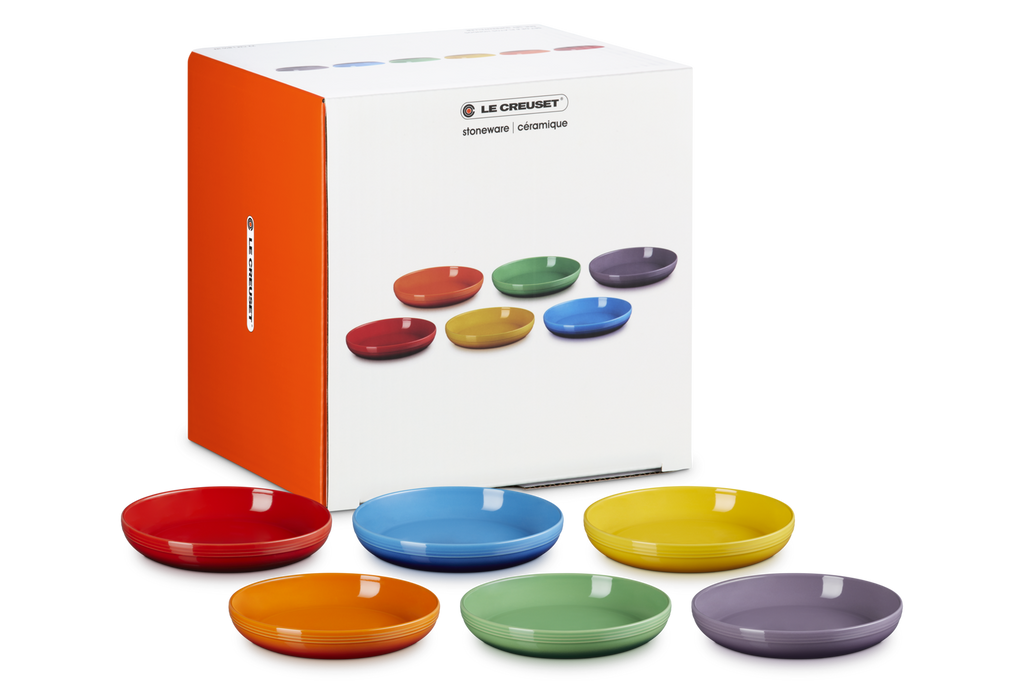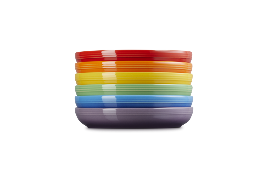 This set of six stoneware pasta bowls features wide, gently sloping sides ideal for pasta, risotto, salads, or desserts. Each bowl showcases one of Le Creuset's signature rainbow hues, bringing playful sophistication to your dining table. Gift-ready and beautifully boxed, it’s a vibrant treat for cooks, hosts, or anyone who loves to dine in style.