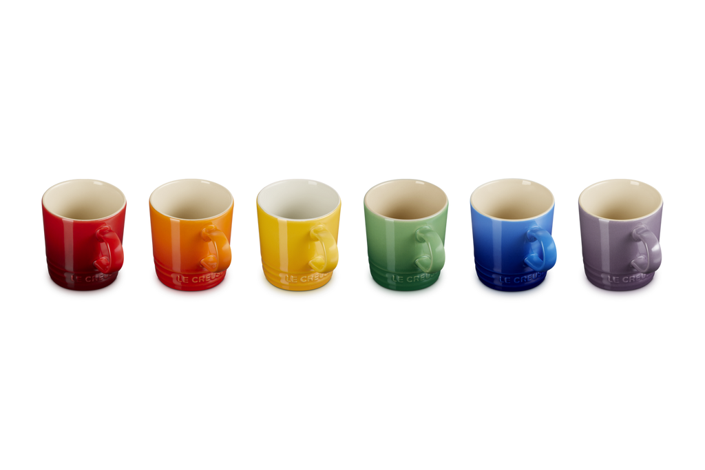 Bring a splash of colour to your kitchen with this vibrant Rainbow Set of 6 Espresso Mugs. Expertly crafted from premium stoneware, each mug showcases one of Le Creuset's iconic hues —Cerise, Volcanic, Nectar, Bamboo, Azure, and Ultra Violet—making every sip a stylish celebration of colour. Made from specialist clays, the stoneware maintains even temperature and is exceptionally strong and durable, with a scratch resistant glaze that is easy to clean.