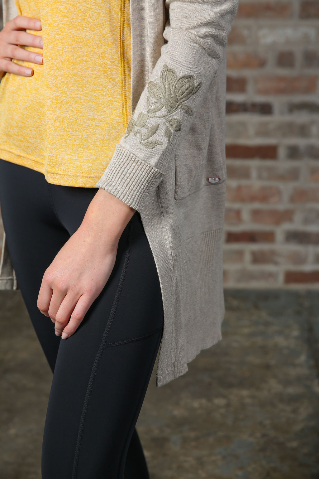 • Embroidered floral detailing on sleeve.