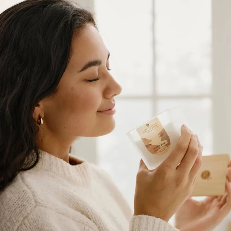 Every detail is thoughtfully crafted for wellbeing – FSC-certified whisper wicks provide a gentle, comforting crackle, while the elegant bamboo wooden lid not only preserves your candle’s purity but doubles as a stylish coaster for your moments of mindfulness. Reclaim your peace with the Restore candle, a perfect companion for your journey to balance and relaxation.