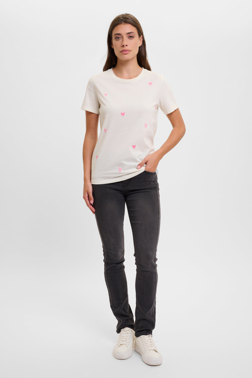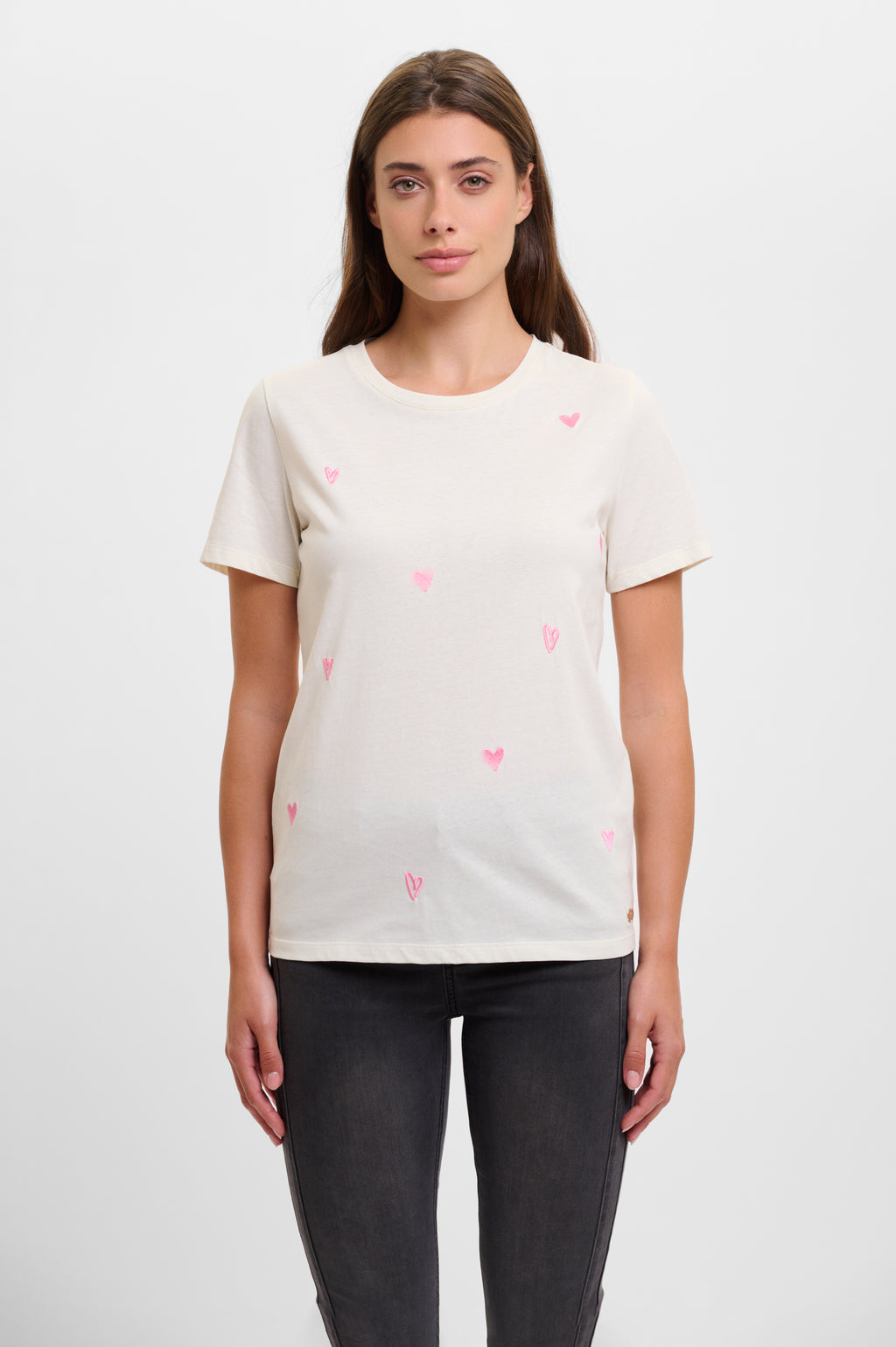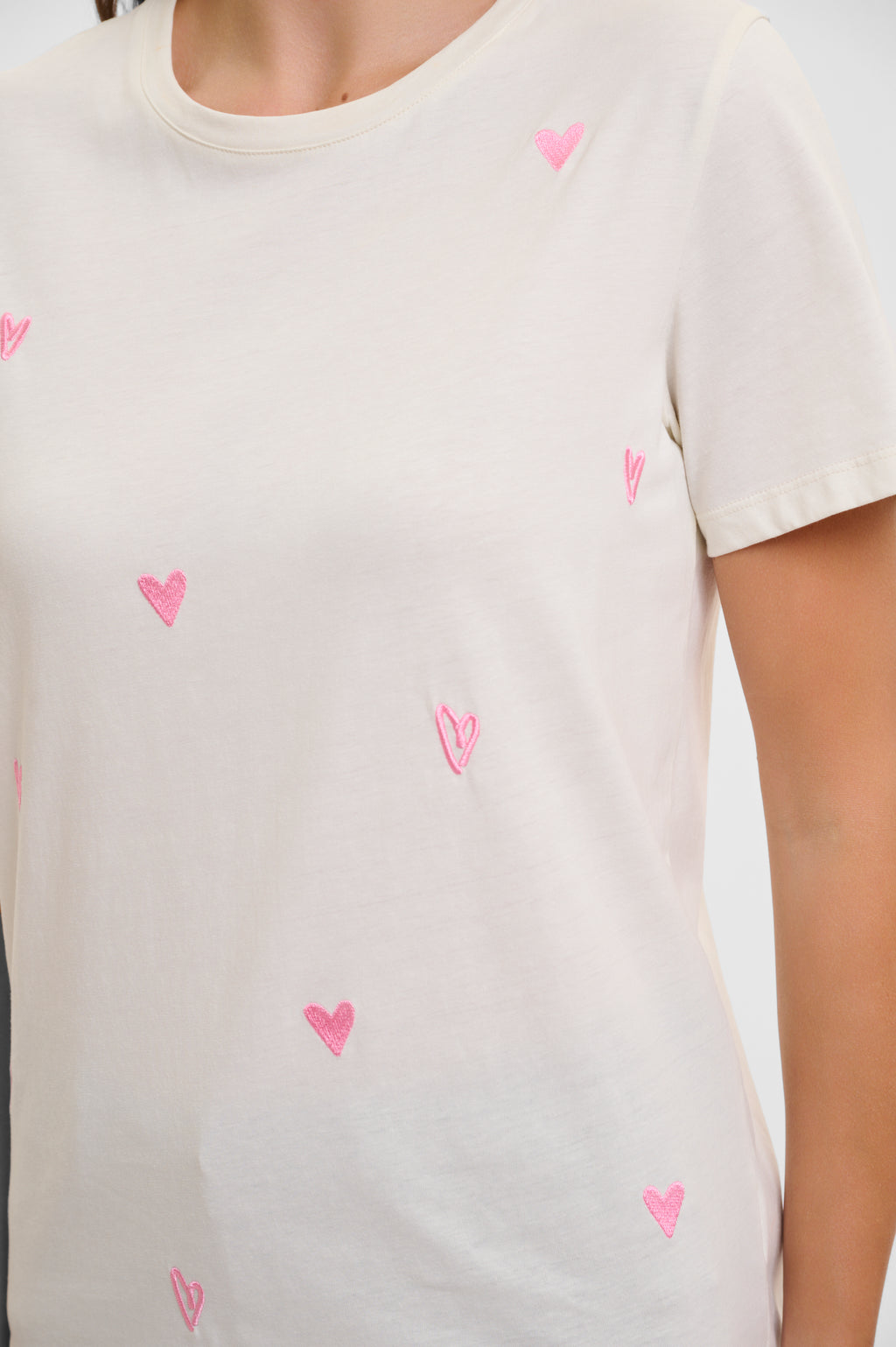 - All-over embroidered hearts.